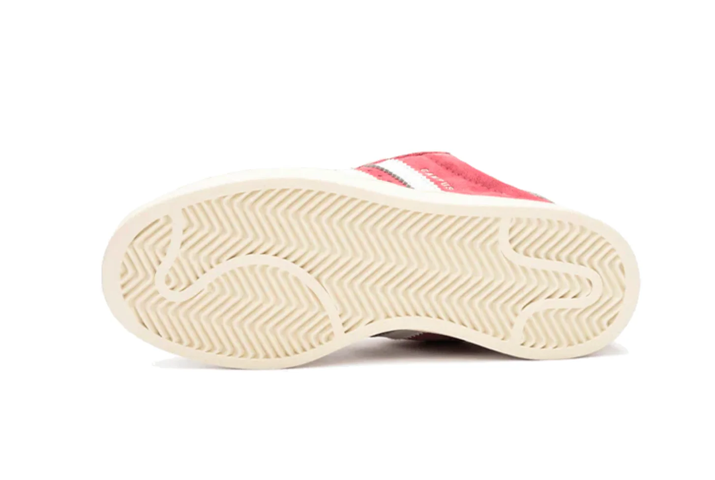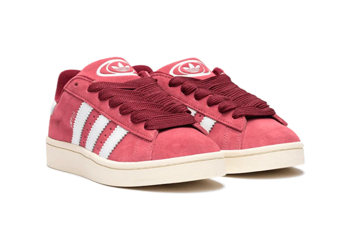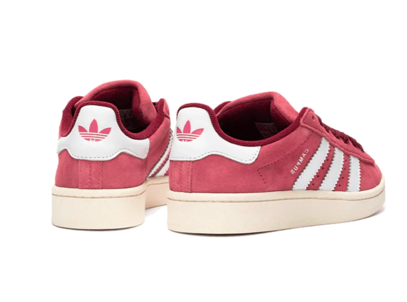 La Adidas Campus 00’s Pink Strata affiche une empeigne en suède rose, complétée par les trois bandes distinctives en cuir blanc sur le panneau latéral, une caractéristique emblématique de la marque qui s’harmonise avec le heel tab. Inspirée de la Campus 80s, cette version dévoile également une semelle jaunie, accentuant ainsi son esthétique vintage.