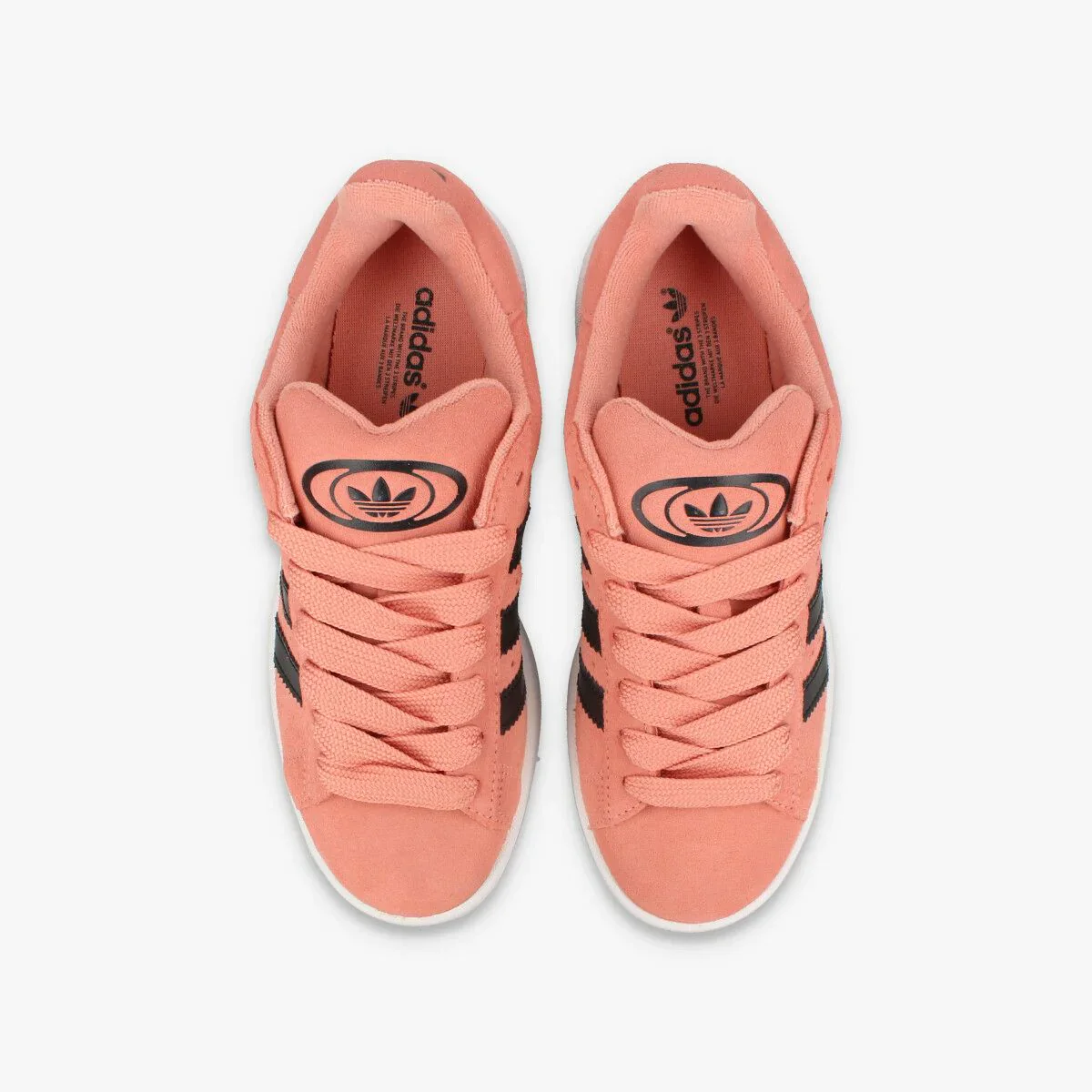 Adidas lance une nouvelle silhouette inspirée du skateboard et des années 2000 : la Adidas Campus 00s Wonder Clay. Cette chaussure présente une empeigne en cuir rose avec les célèbres trois bandes noires épaisses sur le côté, qui sont une caractéristique emblématique de la marque.