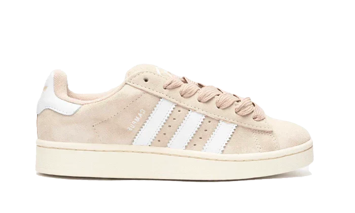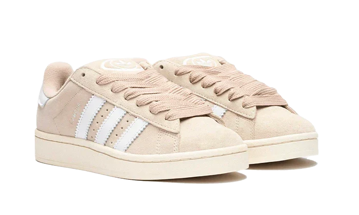 La adidas Campus 00s Wonder White présente une base en cuir beige avec trois bandes blanches épaisses sur le côté, qui sont emblématiques de la marque et correspondent au heel tab (talon). Inspirée du style skate, cette chaussure est similaire à la Campus 80s. Elle est également dotée d’une semelle jaunie pour accentuer l’effet vintage. Si vous avez d’autres questions ou avez besoin de plus d’informations, n’hésitez pas à demander !