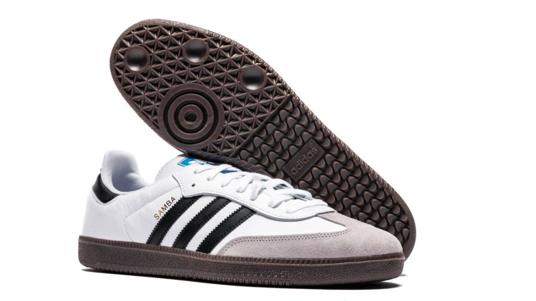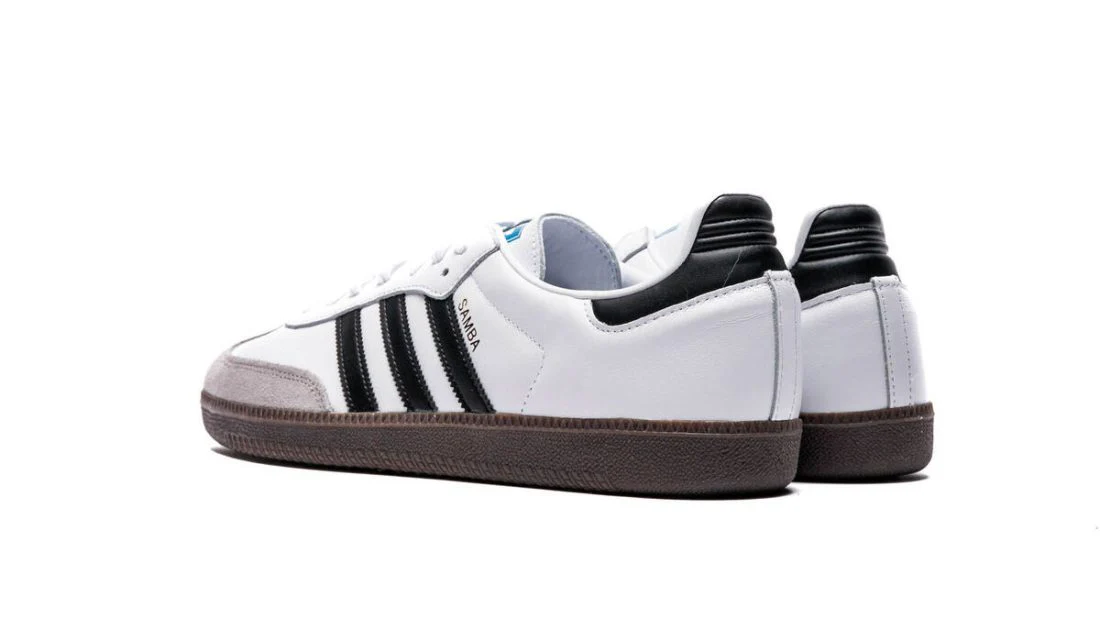 Des détails dorés tels que le logo « Samba » sur le panneau latéral et les trois bandes blanches sur le heeltab viennent sublimer l’empeigne. Pour compléter son look rétro, la chaussure est dotée d’une semelle en gumsole. Cette paire sera un incontournable du streetwear et plaira certainement aux amateurs de style rétro.