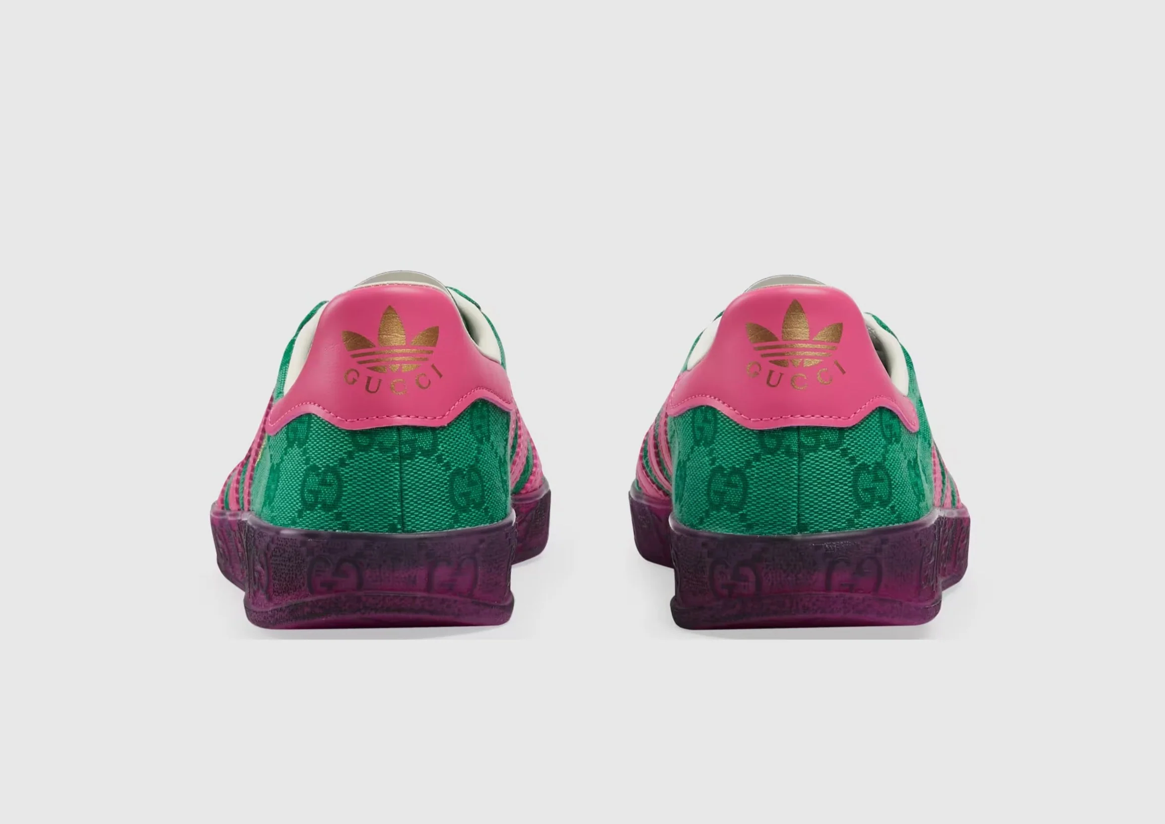 Un deuxième chapitre s’ouvre dans la collection adidas et Gucci, où la bande Web continue de se juxtaposer aux trois bandes blanches, et où le monogramme GG se combine avec le Trèfle. Inspirée des souvenirs du directeur artistique des années 80 et 90, cette collection mélange les motifs emblématiques de la Maison Gucci avec ceux de la marque historique de vêtements de sport adidas, créant ainsi une série de looks hybrides. La sneaker emblématique Gazelle est fabriquée à partir de la toile Original GG.
