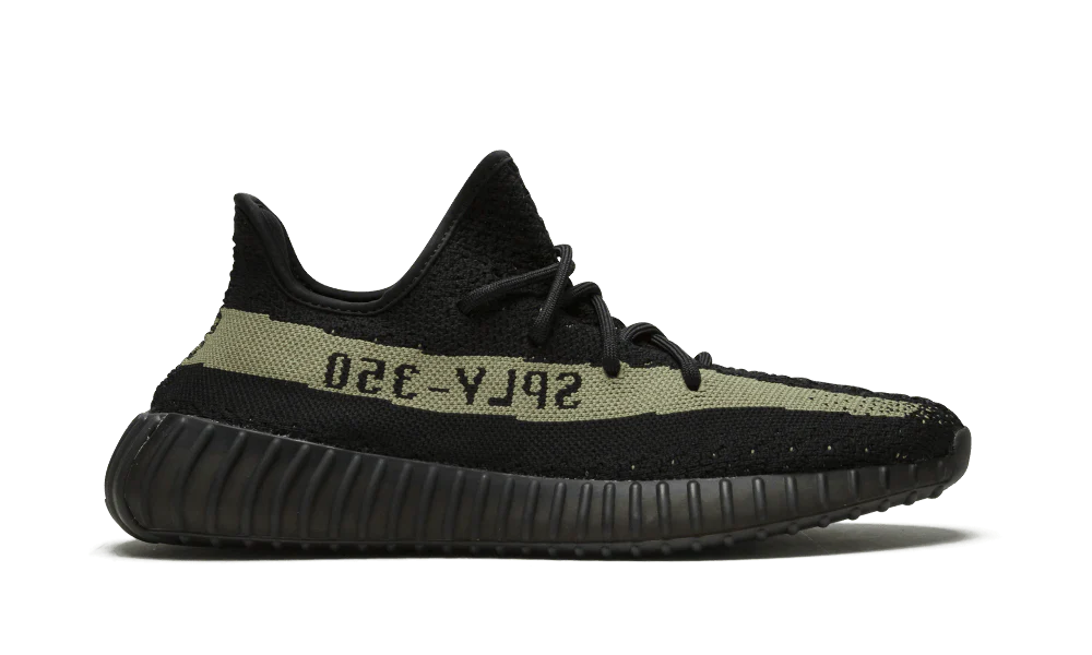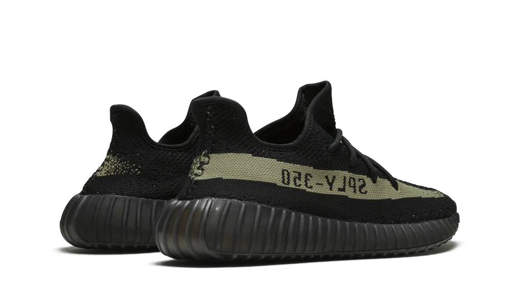 Sa caractéristique distinctive est la bande vert olive qui va du talon aux orteils. Le message « SPLY-350 » apparaît en noir sur toute la bande, tandis que des mouchetures vertes sont également ajoutées sur la tige. Le trio de novembre 2016 du Yeezy Boost 350 V2 fait désormais partie des modèles les plus convoités.