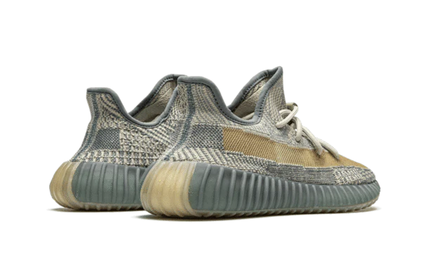 Le modèle se distingue par une bande latérale en monofilament orange, contrastant avec la tige Primeknit bleu-gris clair et crème. Son design épuré est accentué par l’absence de la traditionnelle patte de talon, un élément caractéristique qui varie dans les différentes itérations de la collection Yeezy 350 V2. La semelle intermédiaire nervurée, en bleu clair semi-translucide, intègre la technologie d’amortissement Boost d’adidas, garantissant ainsi un confort optimal et un soutien exceptionnel.