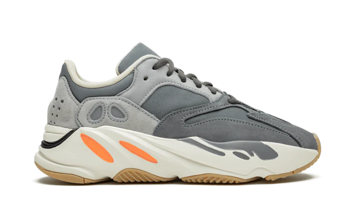 Pour cette édition « Magnet » sortie à l’automne 2019, des superpositions de suède gris anthracite recouvrent la pointe et l’avant-pied d’une toile grise ton sur ton apparaissant comme une base en dessous. Le motif se poursuit sur le milieu du panneau, la langue et le col de la cheville. Une teinte plus claire de daim gris recouvre les oeillets et les panneaux latéraux. Au-dessous, une semelle intercalaire épaisse et caractéristique, aux accents orange vif et gris clair subtils, et une semelle en gomme de grande classe apportent la touche finale à la palette de couleurs. L’adidas Yeezy Boost 700 « Magnet » est sorti en quantité limitée le 4 septembre 2019.