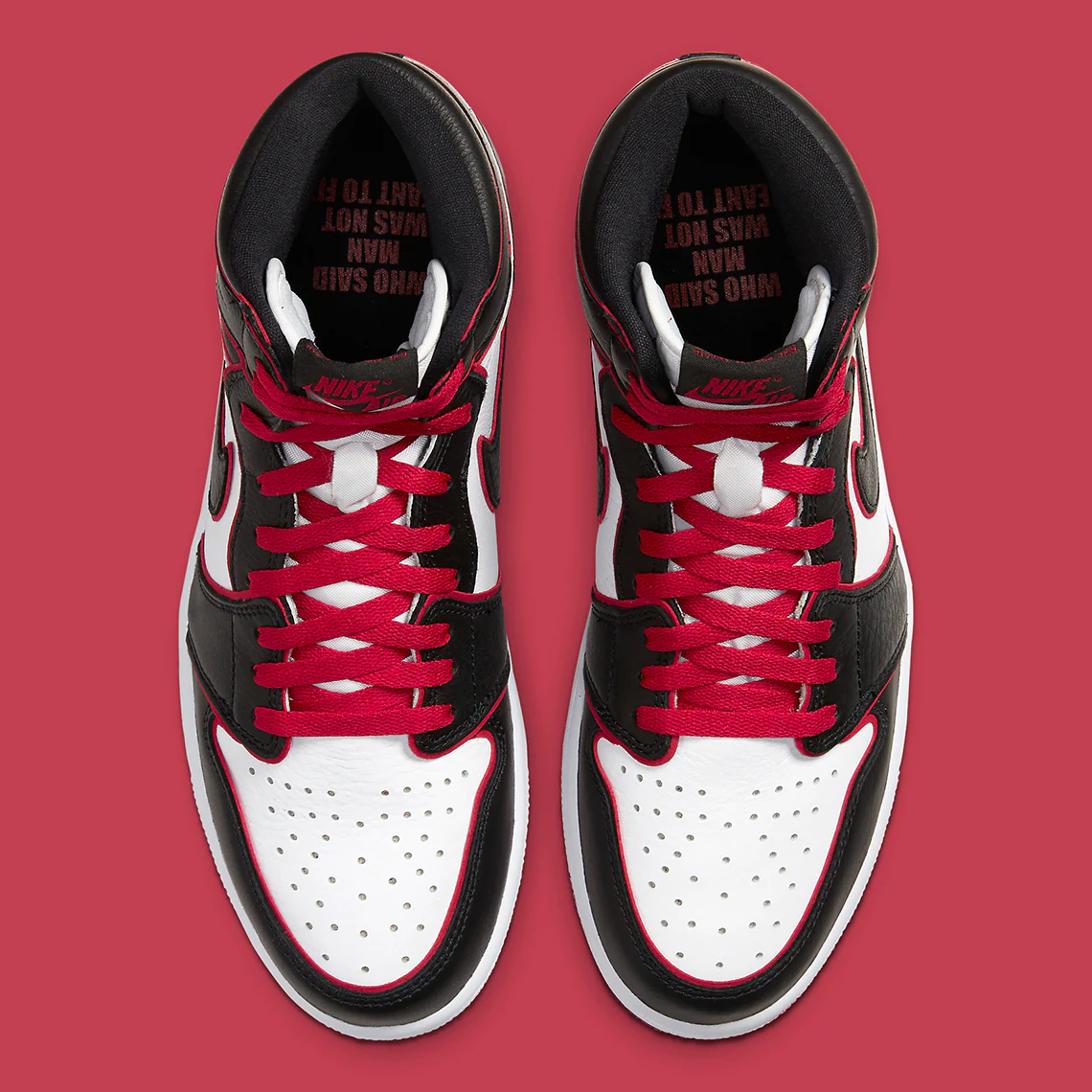 La Air Jordan 1 High OG Bloodline est une version de l’automne 2019 qui s’inspire d’une des premières publicités pour la première chaussure de Michael Jordan. On peut voir Jordan, dans la campagne vidéo du milieu des années 80, décoller au ralenti d’un terrain de jeu au toit noir alors que les bruits des moteurs à réaction tourbillonnent en arrière-plan. Alors qu’il fait un beau dunk, on entend le narrateur de la vidéo dire : « Qui a dit que l’homme n’était pas fait pour voler ? »