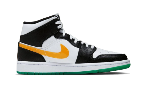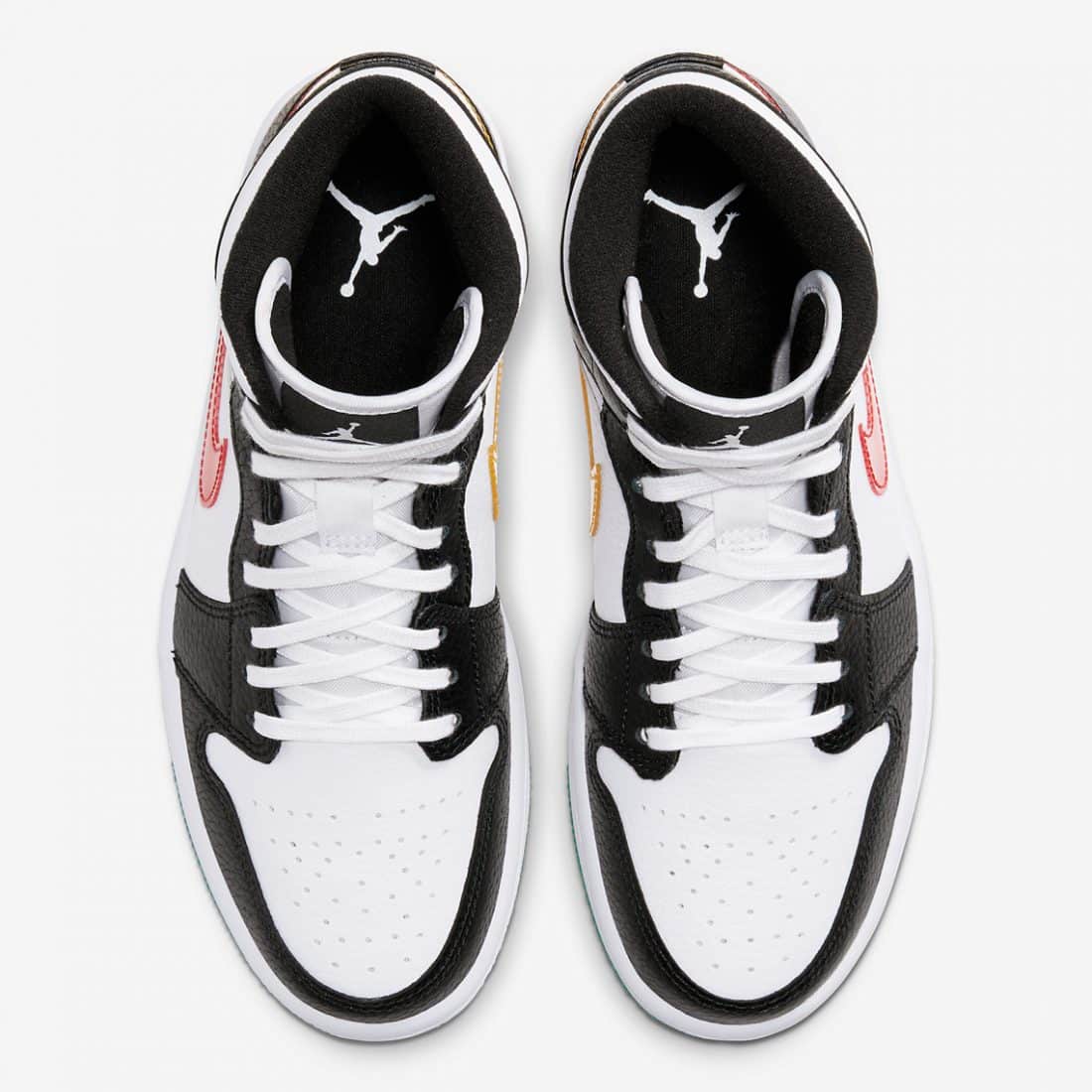 La Air Jordan 1 Mid « Alternate Swooshes » reprend le design de la première chaussure signée de Michael Jordan en hauteur moyenne avec des couleurs alternées du logo Swoosh. Adaptée à la taille des femmes, cette Jordan 1 Mid présente un aspect unique qui correspond au style de vie. Les éléments clés du design comprennent des détails en cuir blanc sur le bout perforé, le panneau intermédiaire et le col. Des couches de cuir noir contrastant sur l’avant-pied, les oeillets, le col et le talon se détachent sur la base blanche.