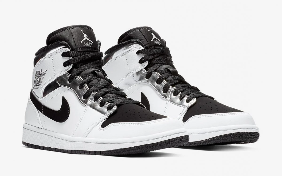 La Air Jordan 1 Mid « Alternate Think 16 » a reçu ce surnom en raison de son apparence similaire à la couleur argent métallique « Think 16 » réalisée pour la star de la NBA Kawhi Leonard. Cette Jordan 1 mid-top présente moins d’argent métallisé, mais elle a opté pour une plus grande dose de cuir blanc solide et de nubuck synthétique noir sur la partie supérieure. L’argent est présent sur le bandeau du support pour les yeux, autour de la cheville et sur le logo classique des « ailes ». Le Air Jordan 1 Mid « Alternate Think 16 » est sorti fin 2018.