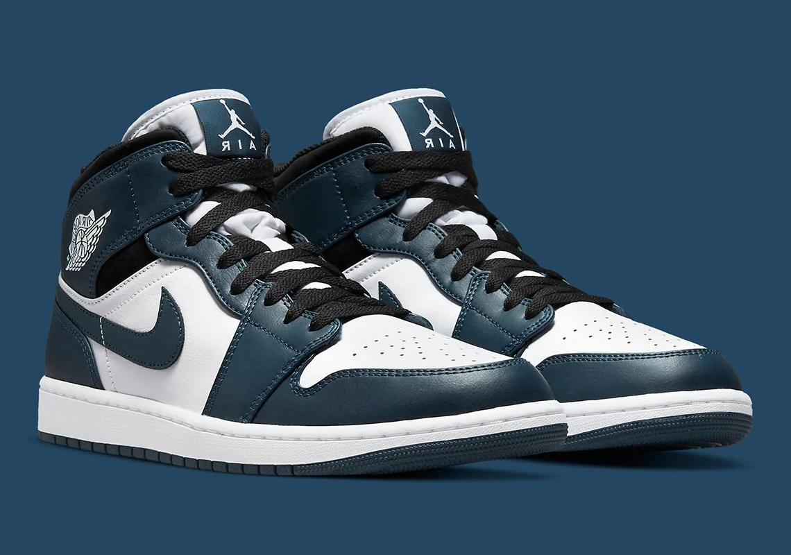 La Air Jordan 1 Mid n’est pas étrangère aux nuances de bleu. Mais ici, la silhouette semble aller un peu à contre-courant, remplaçant l’habituel « Royal » par quelque chose de beaucoup plus classe. Dans le style, cependant, la paire conserve le look classique. Des panneaux et des semelles intermédiaires en cuir blanc mettent toujours la table, tandis qu’un bleu marine foncé recouvre l’embout, le renfort pour les yeux, le rabat de la cheville et le Swoosh.