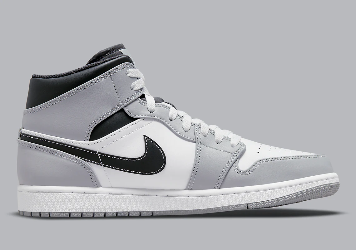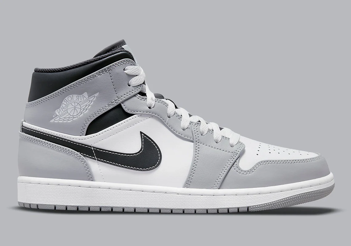 La Air Jordan 1 Mid Light Smoke Grey Anthracite est un coloris polyvalent et neutre de la chaussure lifestyle qui peut être portée avec n’importe quoi. La « Light Smoke Grey 2.0 » présente un design en cuir blanc avec des superpositions de cuir Light Smoke Grey sur la pointe, l’avant-pied et les œillets, ainsi que des panneaux de cuir Anthracite sur le col et le talon. Un Swoosh en cuir noir apparaît sur les côtés et un logo « Wings » blanc se trouve sur le col. Le logo Jumpman gris se trouve sur la languette.