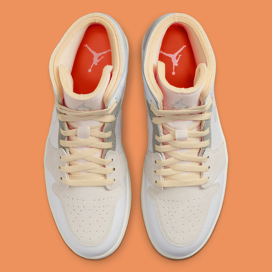 Une fois que Jordan Brand a créé les « FEARLESS ONES », la Air Jordan 1 Mid est passée de l’arrière-plan à l’avant-plan, recevant des colorations presque aussi bonnes que celles de son homologue en hauteur. Le nouveau coloris « Inside Out » est le fruit de ce changement de perspective, car il offre une touche tout aussi intéressante que n’importe quel autre élément de la collection. Précédemment confondue avec une collaboration CLOT ( probablement en partie à cause de ses accents orange ) la « Inside Out » repense certaines parties du design de la tige. L’avant-pied perforé, par exemple, est superposé à l’embout, ce qui est facile à remarquer puisque les deux couleurs sont respectivement gris clair et blanc. Ailleurs, l’arrière est essentiellement déplacé vers le bas, avec la languette de talon marquée Wings prenant une position similaire à celle d’un low-top. Et à part les subtiles coutures dans les tons chauds et le col en mousse exposé, le reste de la construction est assez standard dans ses différents tons neutres.