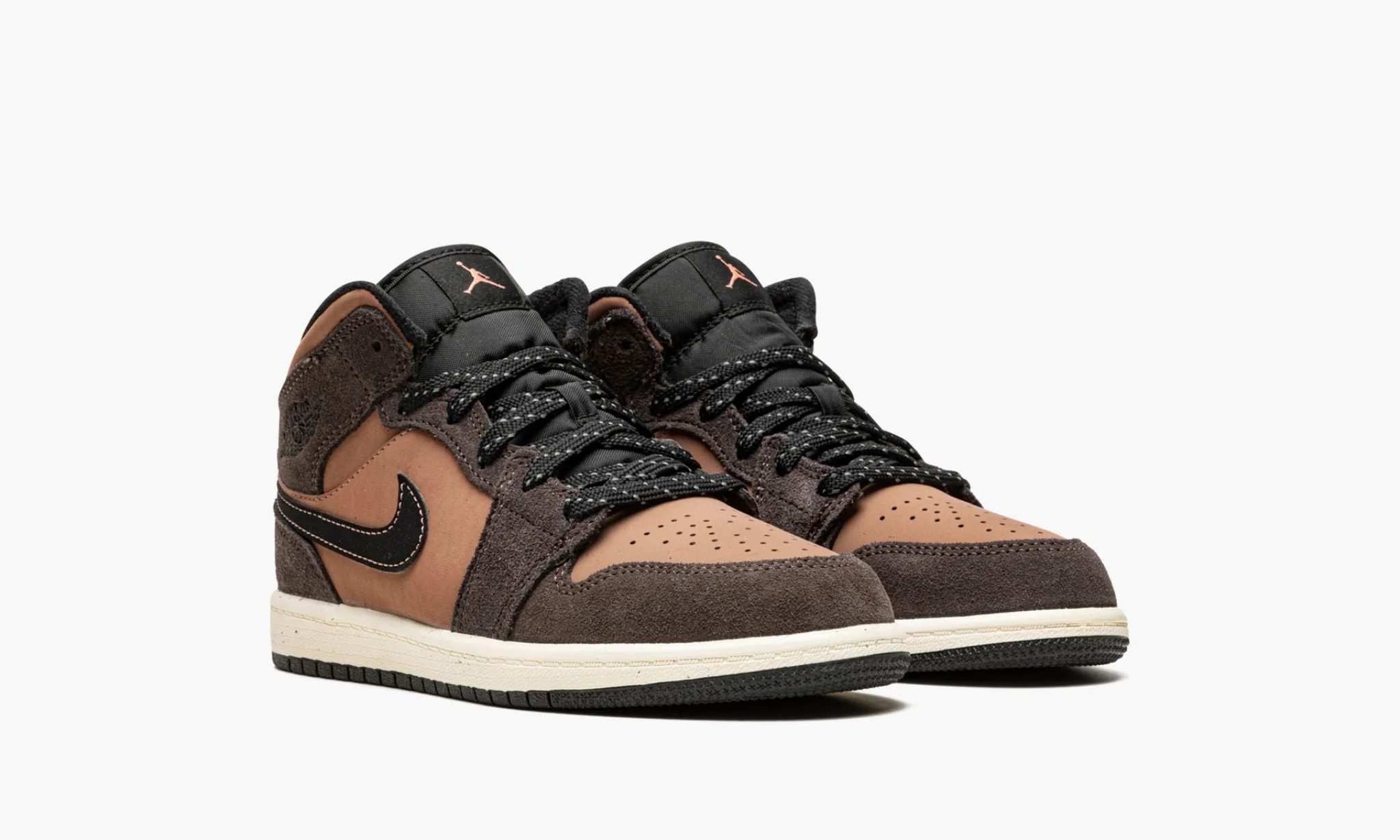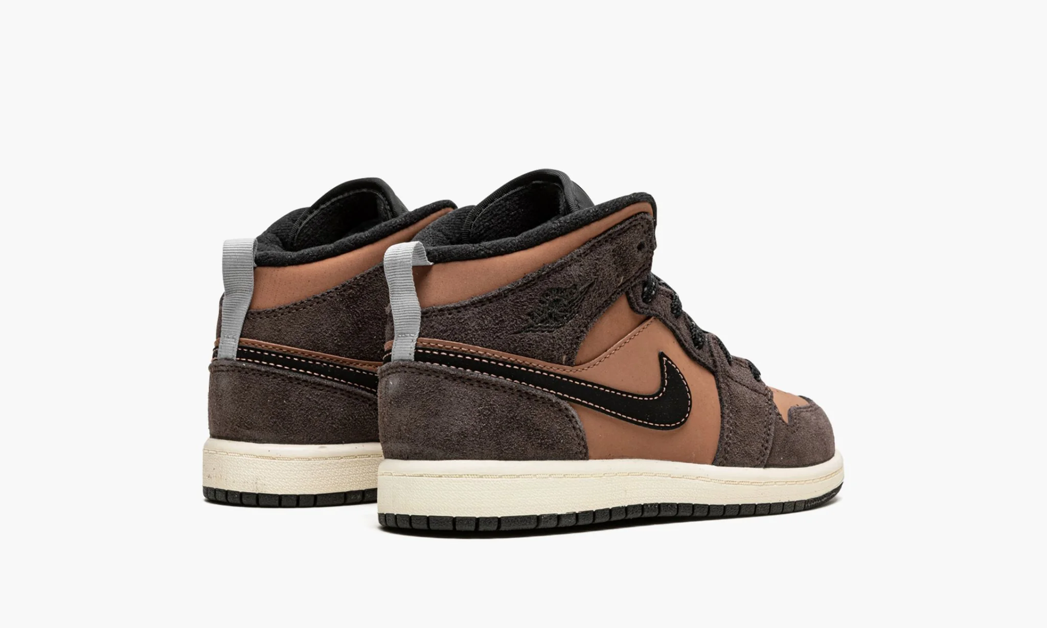 La Air Jordan 1 Mid SE « Dark Chocolate » dans sa version pour enfant est une mise à jour robuste de la première chaussure signature de Michael Jordan dans le style mid-top populaire qui présente des tons de terre sur son design. Fidèle à son surnom, la version « Earth Tone » de la chaussure de basket rétro est assemblée dans des tons neutres et terreux comme le marron et le beige pour un look automnal. Le daim couleur chocolat foncé apparaît sur les superpositions. L’orteil perforé, le panneau central et le col sont en nubuck synthétique d’un brun plus clair. Un Swoosh noir avec des coutures contrastées marron apparaît des deux côtés de la chaussure et un logo « Wings » noir est situé sur le col. Le logo Jumpman classique et le logo « Air » de couleur marron contrastent avec l’étiquette de la languette en nylon noir qui se trouve sur la languette en nylon noir. Des lacets noirs mouchetés de blanc complètent le design.