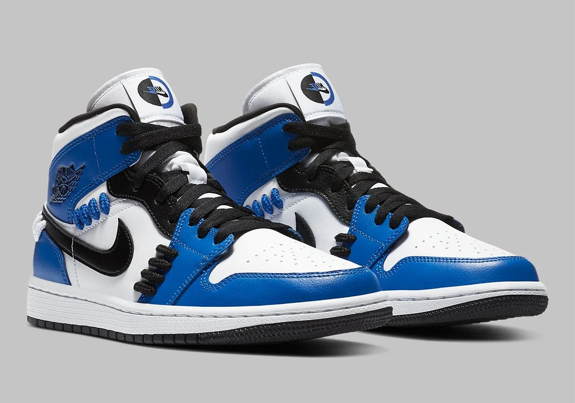 La Air Jordan 1 Mid « Sisterhood » est inspiré par le lien entre les femmes à l’intérieur et à l’extérieur de la communauté des baskets, avec des détails uniques inédits sur le modèle. La Jordan 1 Mid présentée ici apparaît dans un bloc de couleur classique qui peut être porté au quotidien. Les superpositions de cuir Game Royal contrastent avec la base en cuir blanc de la tige. Un Swoosh en cuir noir sur le panneau central et des détails en cuir noir autour des oeillets ajoutent de l’équilibre à l’apparence.
