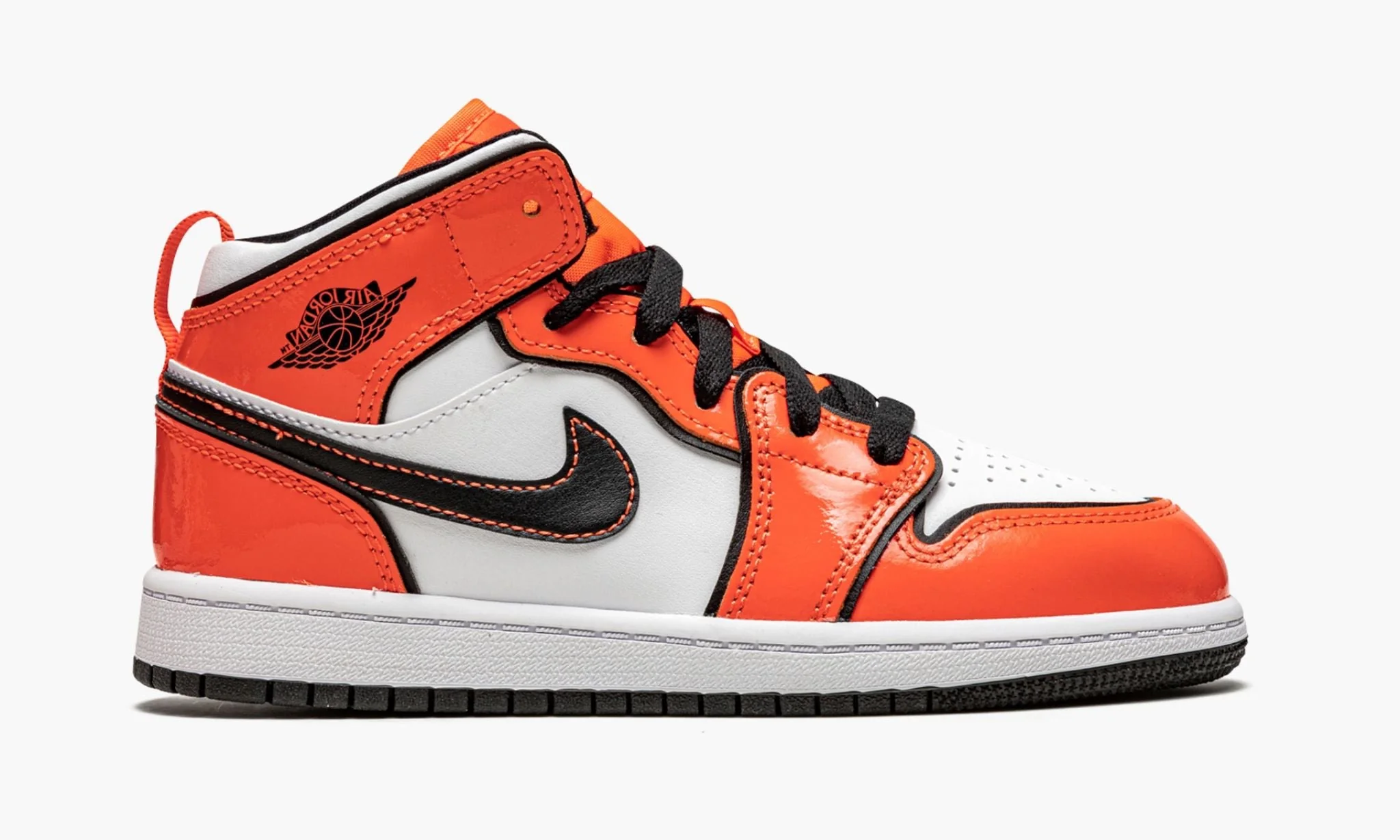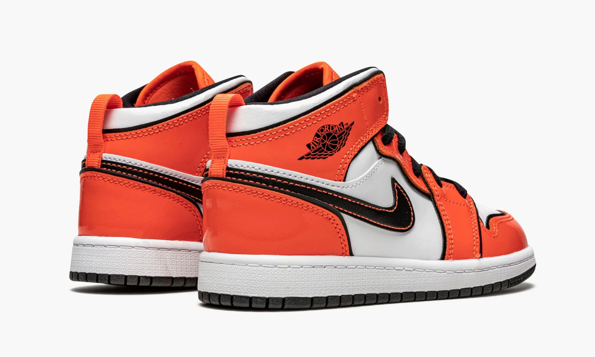 La Air Jordan 1 Mid SE PS « Turf Orange » est un coloris vibrant pour la version mid-top de la première chaussure signée Michael Jordan en taille enfant. La « Turf Orange » présente des superpositions de cuir orange brillant sur l’avant-pied, les œillets, le col et le talon. Jordan Brand contraste les détails flamboyants avec du cuir blanc sur l’orteil perforé, le panneau central et le col. Un Swoosh en cuir verni noir avec des surpiqûres contrastantes orange se trouve de chaque côté de la chaussure. De plus, un logo « Wings » noir orne le col et un Jumpman noir apparaît sur la languette orange.