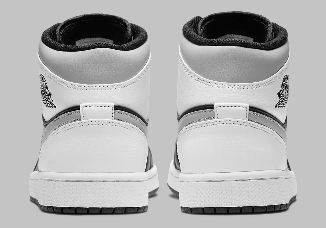 La Air Jordan 1 Mid « White Shadow » met en valeur la portabilité de la première chaussure signée Michael Jordan dans son design mi-haut en utilisant un schéma de couleur propre et neutre. La partie supérieure de cette chaussure « White Shadow » est en cuir blanc sur le bout perforé, les œillets supérieurs, le recouvrement du col et le talon. Une variété de cuir noir lisse se trouve à l’avant du pied et au milieu du panneau. La marque Light Smoke Grey Swoosh apparaît sur les côtés et un logo « Wings » en cuir noir se trouve sur le col.