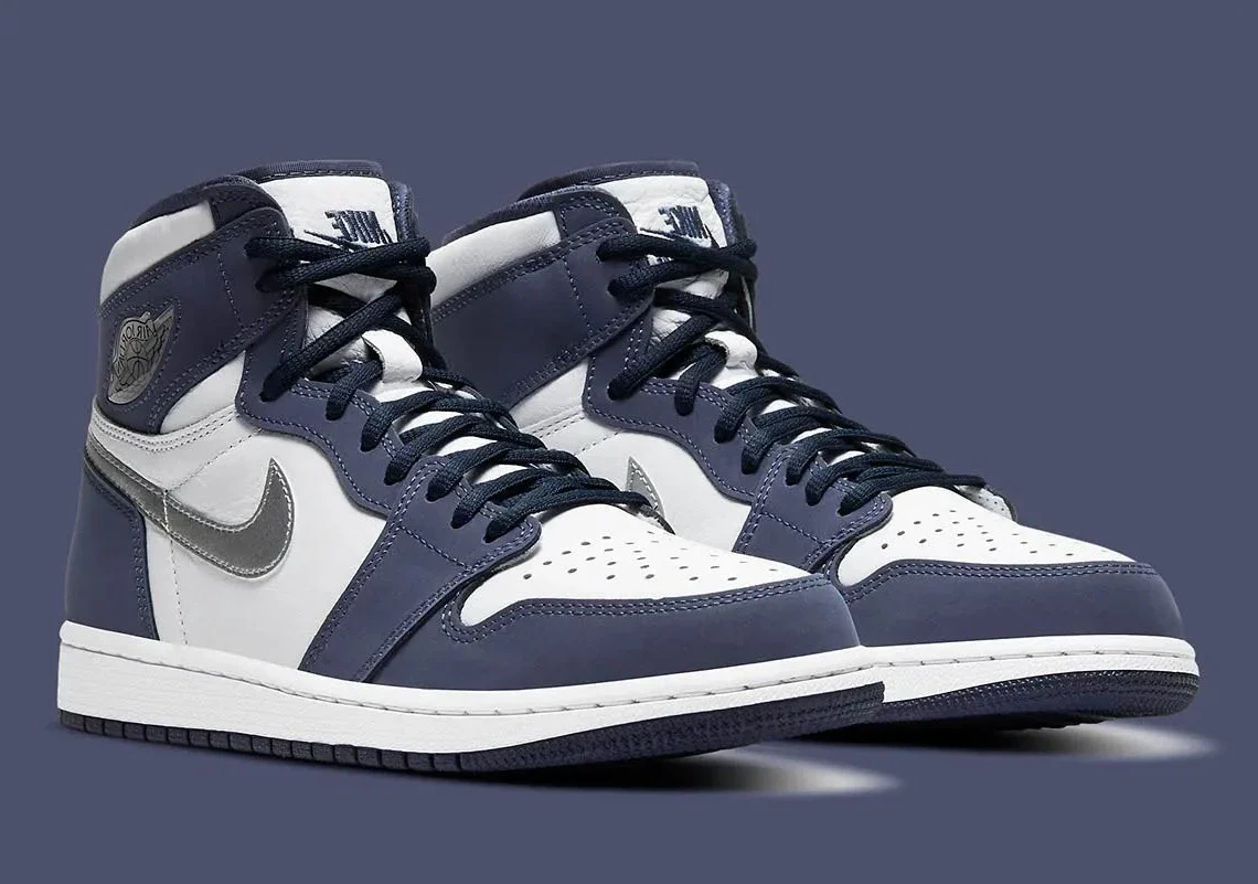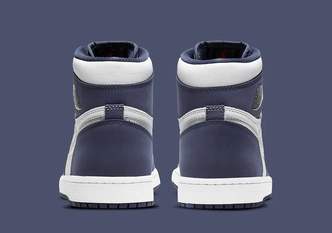 La « Midnight Navy » d’Air Jordan 1 High Co.Jp est l’un des nombreux coloris exclusifs qui figuraient à l’origine dans la célèbre série « Concept Japan » de Nike, qui est revenue en 2020. La « Midnight Navy » a été l’une des premières Jordan 1 à présenter un schéma de couleurs marines, ce qui a été fait dès 2001. Comme à l’époque, la palette de couleurs reste fraîche et polyvalente aujourd’hui. La partie supérieure présente une structure en cuir blanc sur le bout perforé, le milieu du panneau et le col.