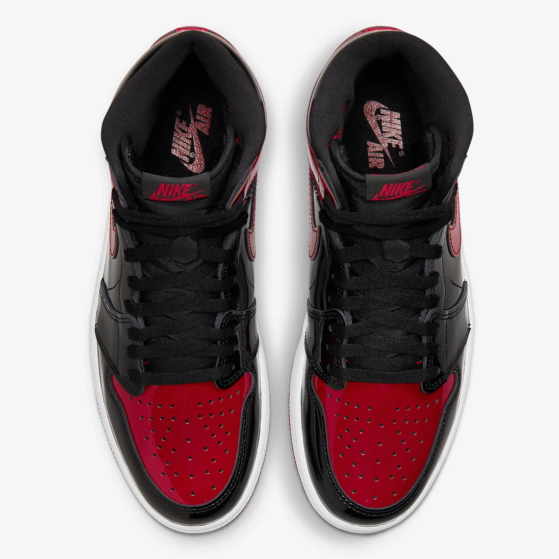 Présentant un mélange classique de teintes, la Air Jordan 1 Retro High OG « Patent Bred » arbore également une construction surélevée. Construite entièrement en cuir verni, la tige de la chaussure apparaît dans un mélange familier de noir et de rouge Varsity, avec des perforations sur la zone des orteils offrant une respirabilité. Sous le pied, une semelle intercalaire Air blanche offre un amorti et un contraste, laissant place à une finition Varsity Red sur la semelle extérieure en caoutchouc concentrique, qui est incluse pour la traction.