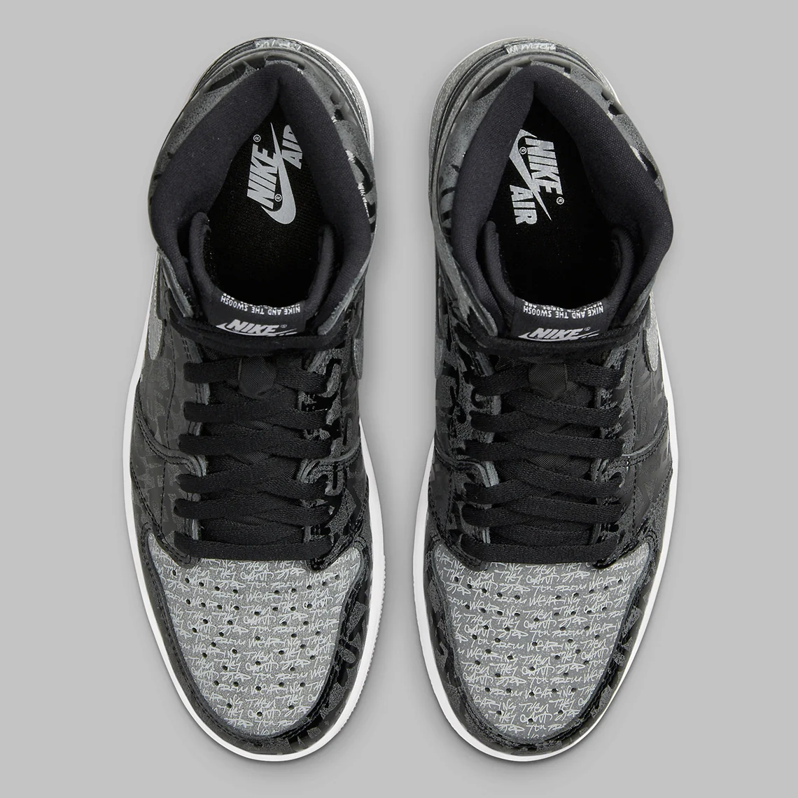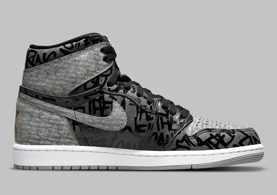 La chaussure qui se rattache au récit mythique « Banned » de la chaussure, présente une tige en cuir finie dans un blocage de couleur bicolore similaire au coloris OG « Shadow« . Les détails incluent le « X » rouge de l’AJ1 « Banned » sur le talon, ainsi qu’un imprimé intégral qui énonce « They Can’t You From Wearing Them », qui paraphrase une ligne d’une publicité télévisée Air Jordan 1 originale de 1985