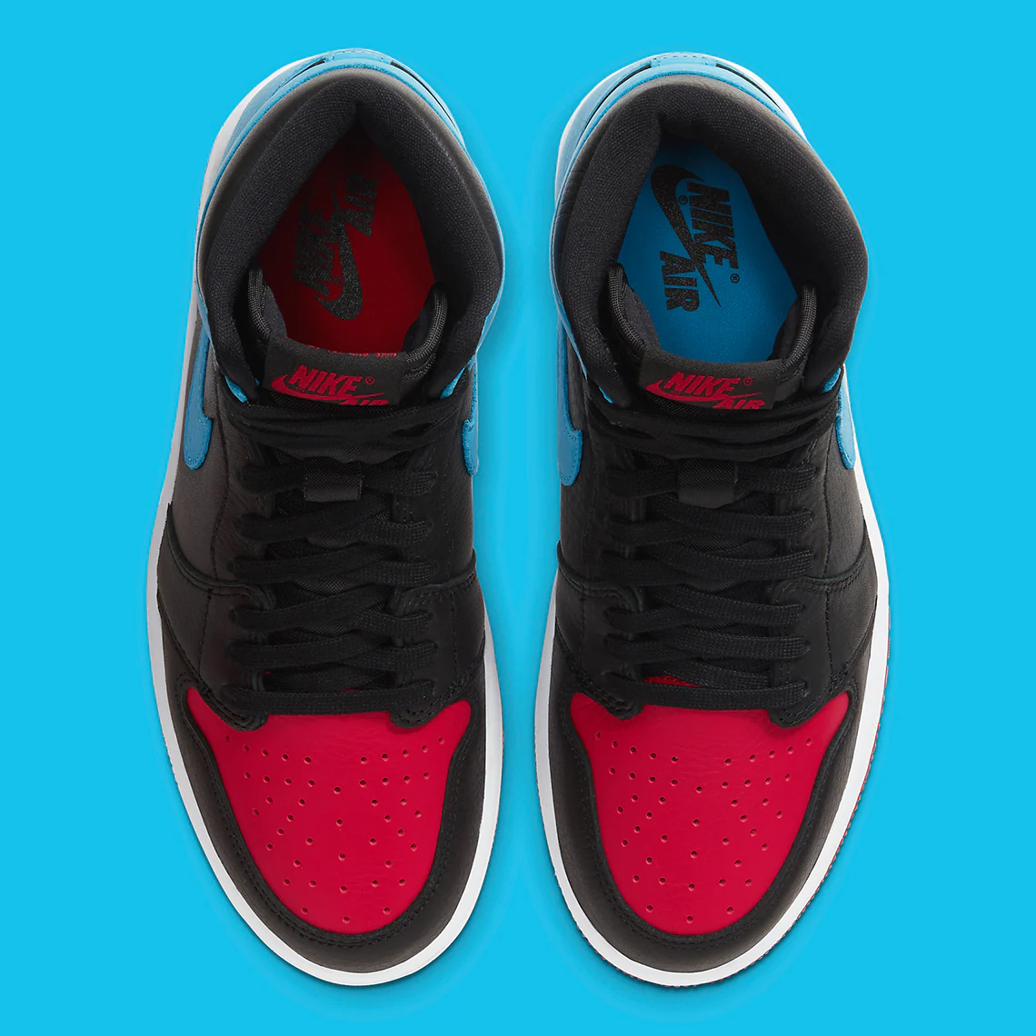 Le rouge « Chicago » contrasté recouvre l’embout en cuir perforé. Ailleurs, le cuir Carolina Blue met en valeur le logo Swoosh, talon et ailes situé sur le col. La Jordan 1 « UNC to Chicago », une exclusivité féminine, reçoit une semelle intermédiaire blanche classique et une semelle extérieure rouge pour compléter le design. Date de sortie : 14 février 2020.