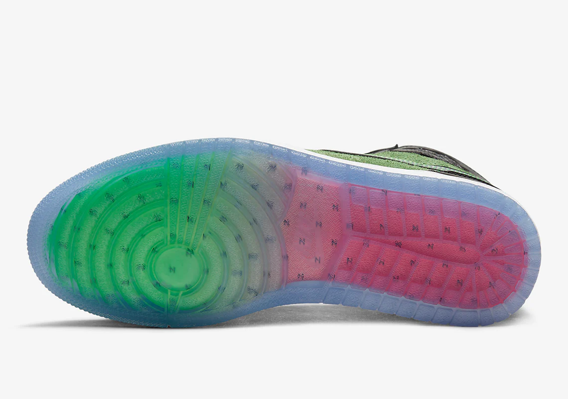 La Air Jordan 1 High Zoom « Zen Green » intègre la technologie Zoom Air dans la semelle de la première chaussure signée Michael Jordan. Le modèle Jordan 1 Zoom a fait ses débuts fin 2019 avec beaucoup de succès. Aujourd’hui, la marque Jordan revient avec ce design « Zen Green » dans le cadre de son cycle de lancement de l’été 2020, et les résultats sont clairement aussi favorables. Le daim Zen Green poilu met en valeur le bout et le milieu de la chaussure perforés. L’avant-pied, les œillets, le col et le talon sont recouverts de cuir noir souple.