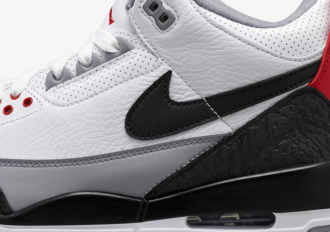 Confectionnée en cuir premium, elle conserve les codes emblématiques de la Jordan 3 : l’Elephant Print iconique, la semelle intermédiaire bicolore et la bulle Nike Air visible au talon. L’originalité de cette édition réside dans les Swoosh interchangeables, permettant de personnaliser le design avec plusieurs options.