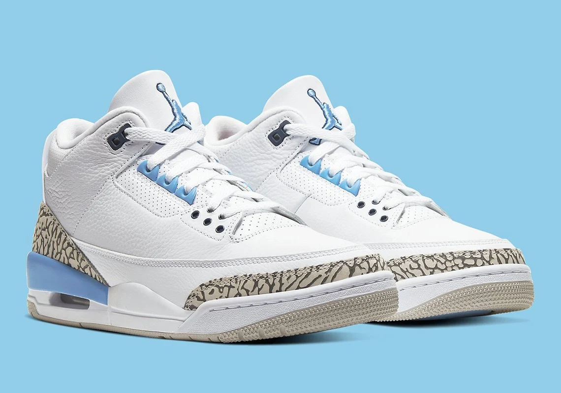 L’Air Jordan 3 « UNC » est un coloriage basé sur le bleu de Caroline du design du Jordan 3 inspiré par l’Université de Caroline du Nord Tarheels. Le maquillage « UNC » de l’Air Jordan 3 est arrivé pour la première fois en tant que joueur exclusif lors du tournoi de basket-ball masculin NCAA de mars 2018 et réapparaît maintenant dans une version séparée pour le grand public.