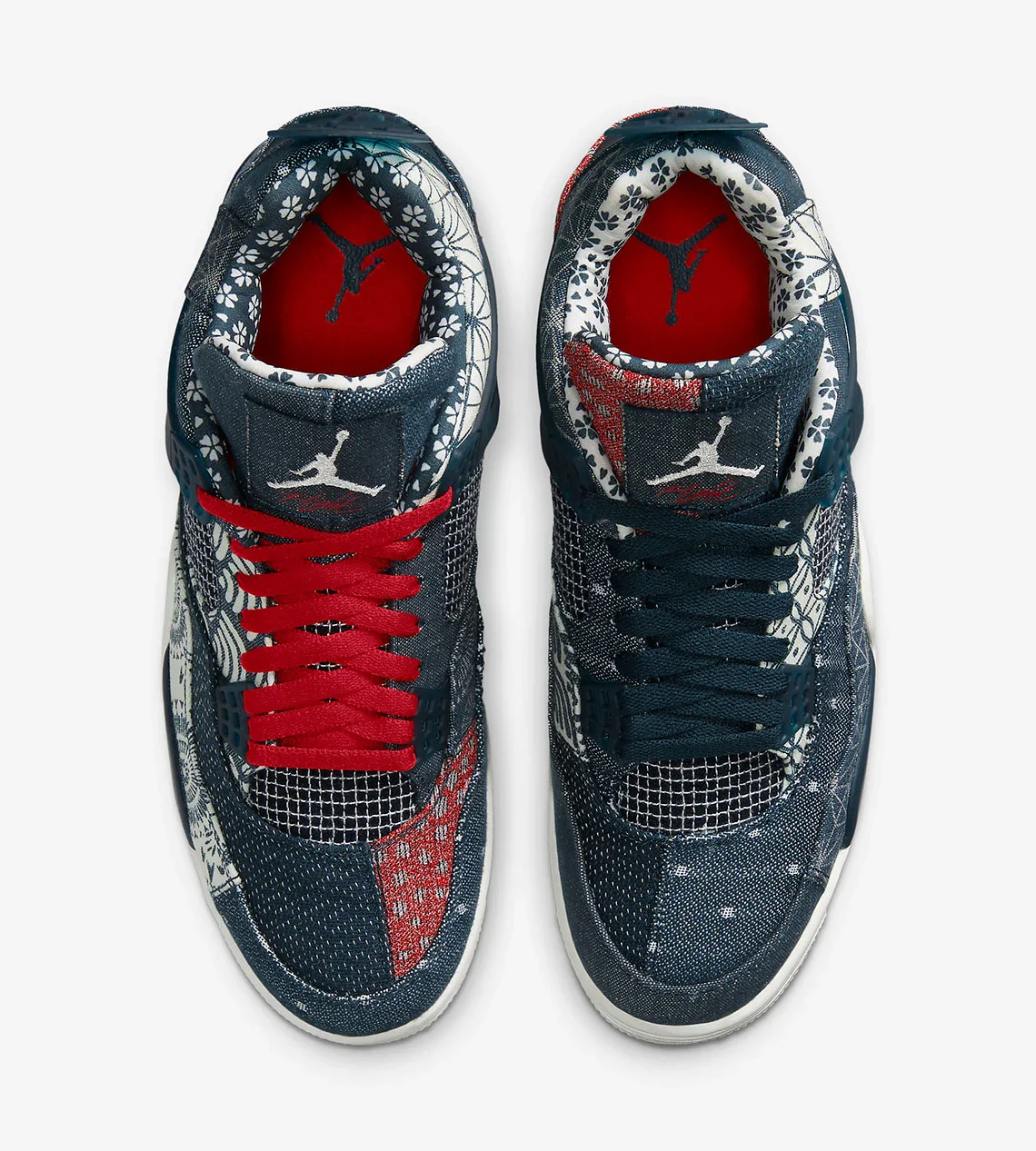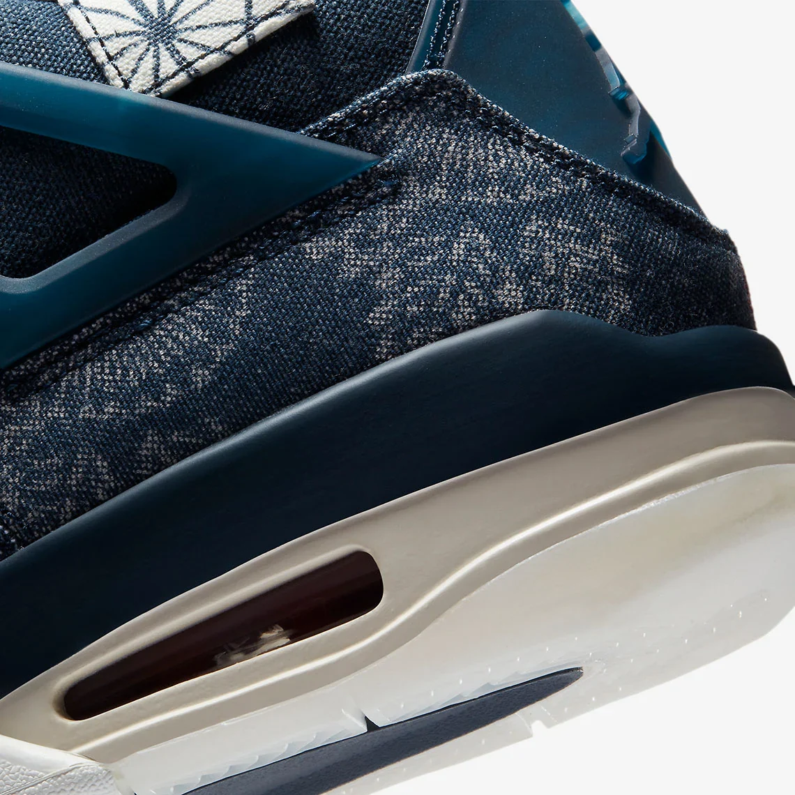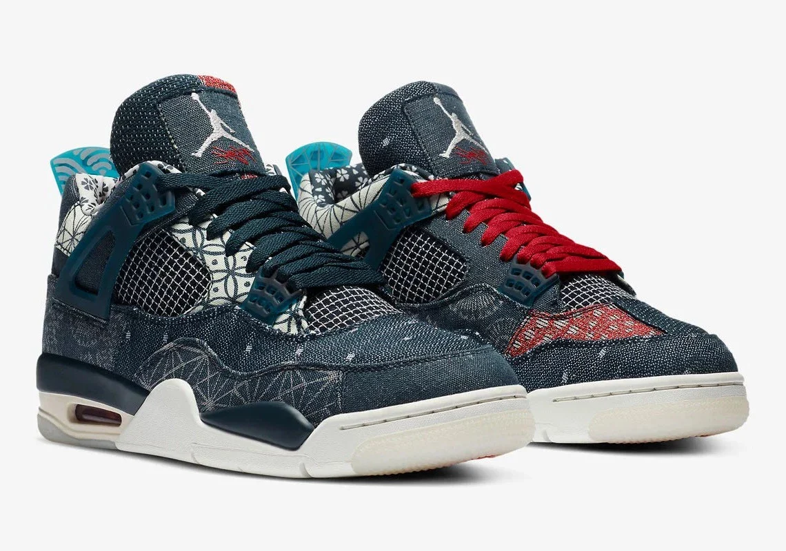 Inspiré par les coutures sashiko japonaises, la Air Jordan 4 Retro SE « Sashiko » se présente avec une construction textile. La partie supérieure présente une série d’imprimés abstraits et de broderies décoratives, le tout dans un mélange de Deep Ocean et de Sail. Les inserts en maille habituels marquent le quart de panneau et l’empeigne, tandis que la languette comporte du rouge feu pour contraster l’aspect. Sous le pied, la semelle intermédiaire Sail abrite de l’air visible dans le talon pour l’amortir, avec une semelle extérieure en caoutchouc incluse pour la traction.