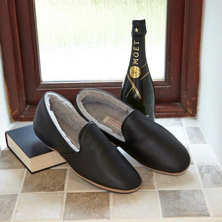 Crafted with a beautifully milled leather upper and luxuriously soft sheepskin lining, the Albert slipper naturally regulates warmth and breathability, keeping feet cosy in cooler months while remaining supple and comfortable year‑round. The suede sole with rubber pads offers flexible support and reliable grip for both indoor wear and light steps outside, making these slippers as practical as they are stylish.