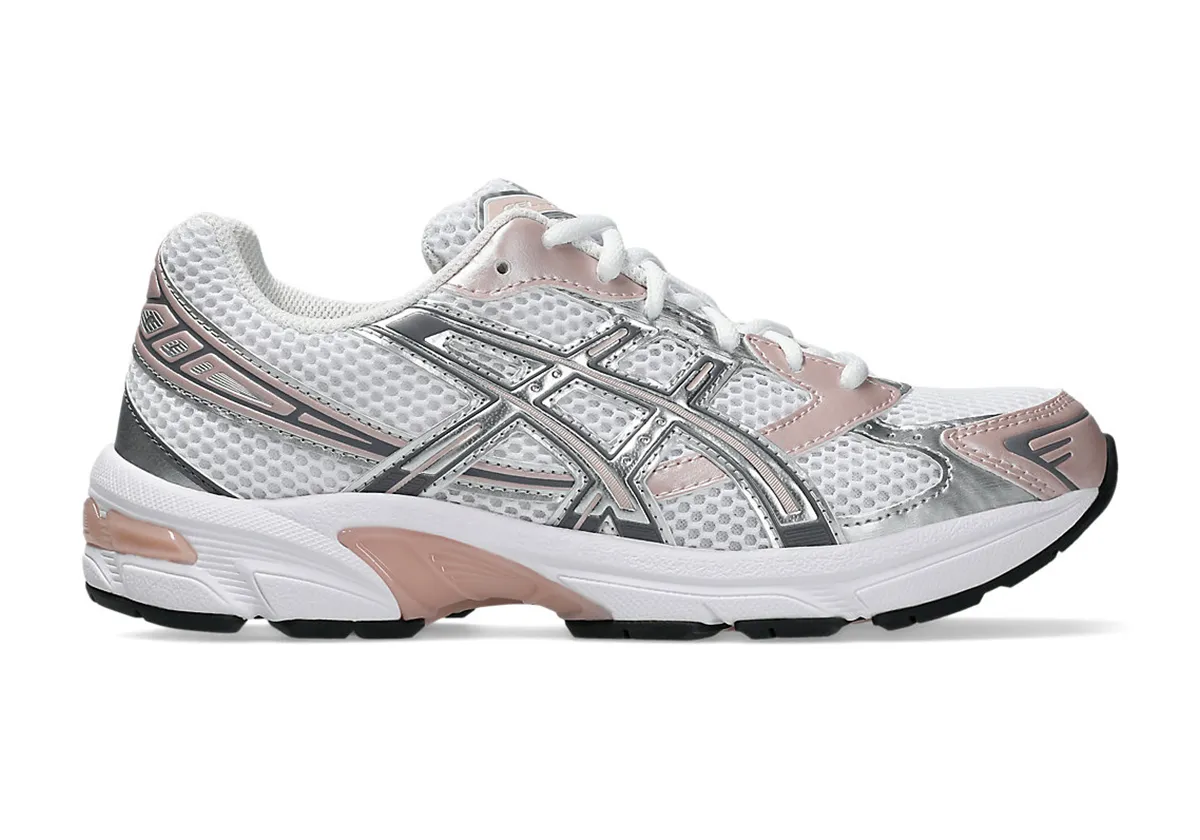 La ASICS Gel-1130 White / Neutral Pink célèbre l’équilibre parfait entre performance running et style urbain doux. Sa tige en mesh blanc immaculé assure une grande légèreté et une excellente respirabilité, tandis que les détails rose « Neutral Pink » et les superpositions métalliques subtils apportent raffinement et féminité à cette silhouette résolument moderne.