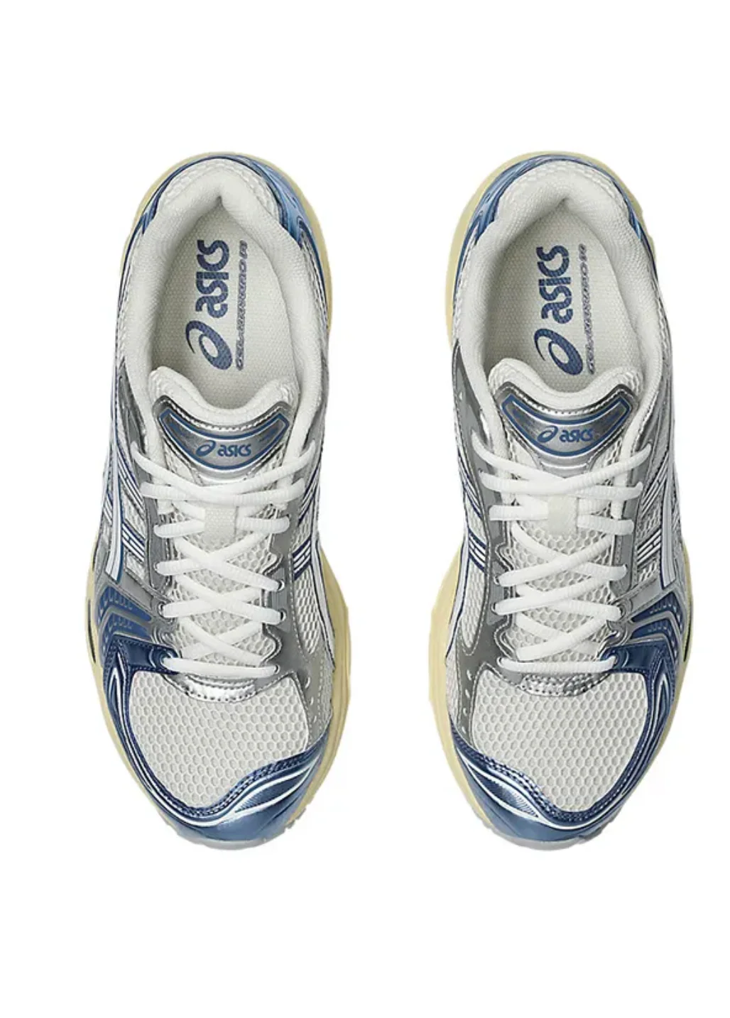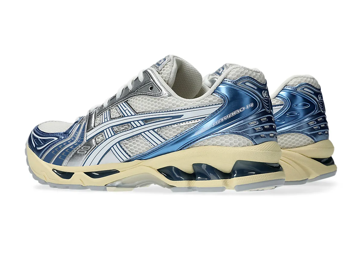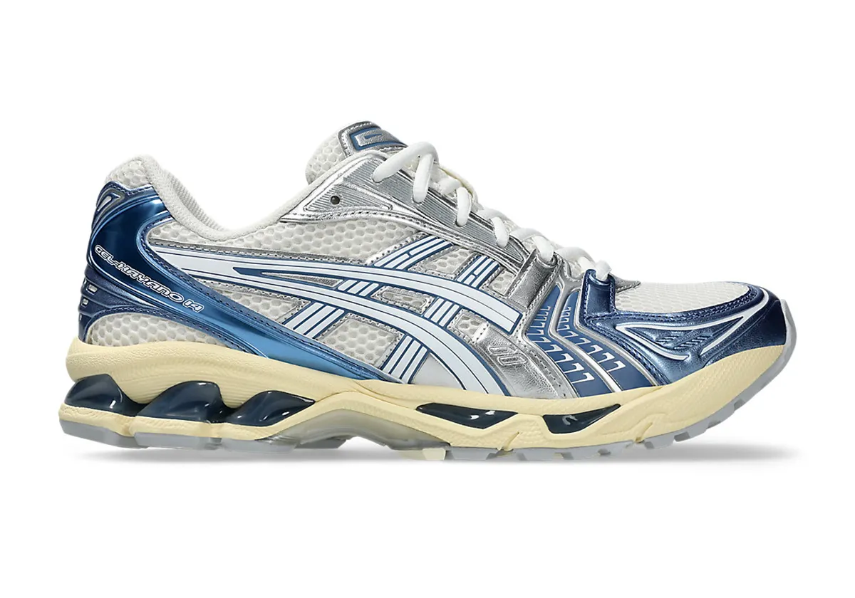La ASICS GEL-Kayano 14 Cream Metallic Blue incarne la rencontre entre héritage running rétro et raffinement moderne, fidèle à l’esprit innovant de la marque japonaise. Sa tige en mesh crème se pare de détails métallisés bleu acier et de touches argentées, créant une esthétique à la fois technique et élégante. Les bandes latérales ASICS brillent sous la lumière, soulignant la structure fluide et dynamique de la silhouette.