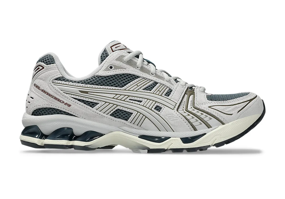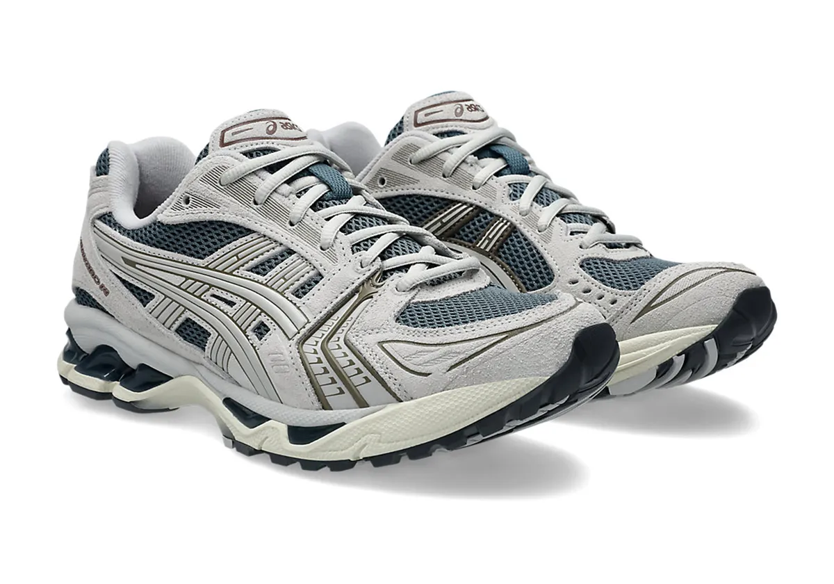 La ASICS GEL-Kayano 14 Ironclad Cloud Grey revisite la silhouette emblématique de 2008 en lui insufflant une palette raffinée et urbaine. Sa tige en mesh gris clair “Cloud Grey”, associée à des superpositions en cuir synthétique ou nubuck gris foncé “Ironclad”, crée une esthétique subtile et sophistiquée. Les détails métallisés apportent une touche premium tout en conservant l’ADN technique de la Kayano.