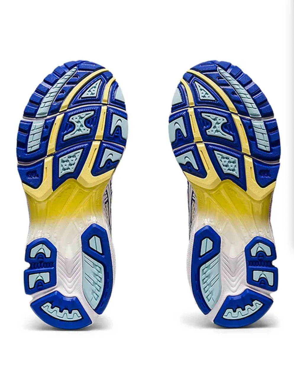 Sous le pied, la sneaker embarque la technologie GEL™ visible à l’avant et à l’arrière, offrant un amorti souple et réactif. La semelle intermédiaire en EVA garantit un confort durable et une stabilité idéale, fidèle à la réputation d’excellence technique de la gamme Kayano. Cette version “Marshmallow Blue Pink” séduit autant par son esthétique pastel apaisante que par son confort premium.