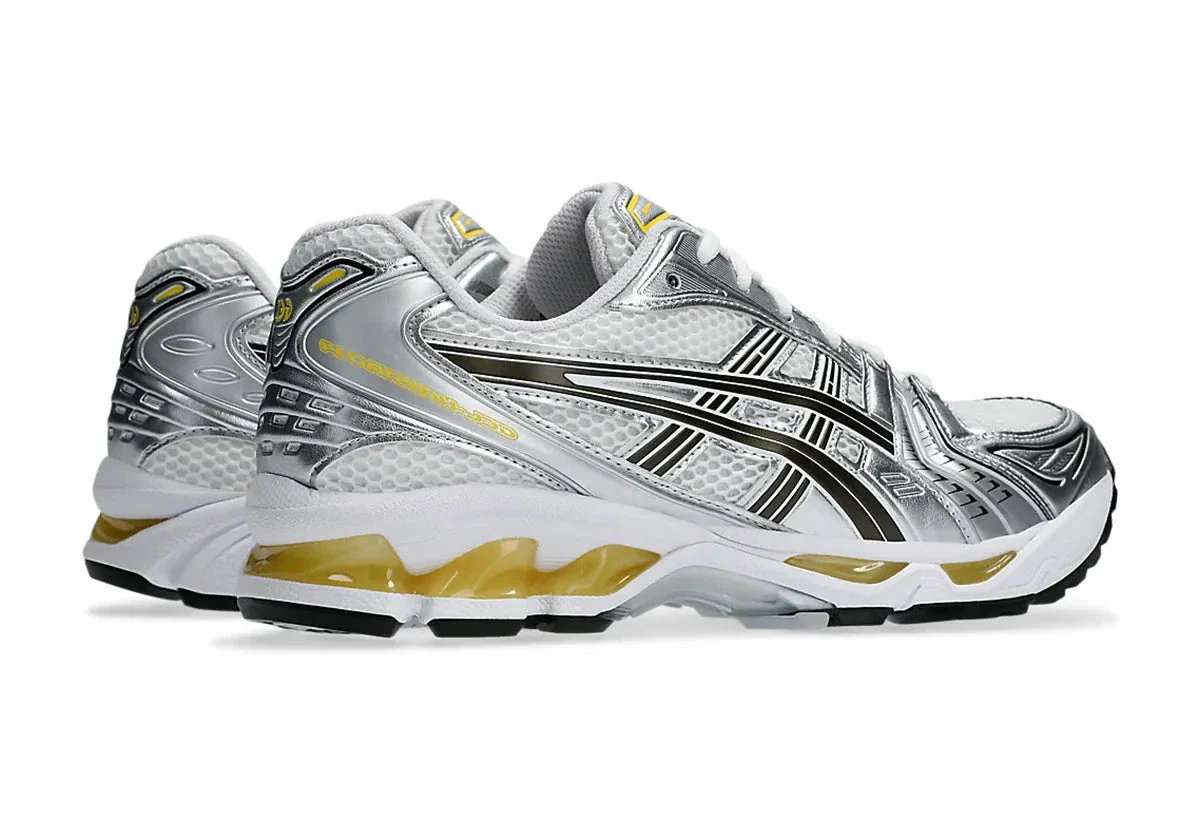 La ASICS GEL-Kayano 14 Tai Chi Yellow revisite la mythique silhouette running de 2008 avec une énergie solaire et vibrante, fidèle à l’héritage technique d’ASICS. Sa tige en mesh respirant argent métallisé est illuminée par des accents jaune “Tai Chi Yellow” dynamiques sur les bandes latérales et le talon, apportant un contraste à la fois sportif et raffiné. Les empiècements en cuir synthétique renforcent la structure, tandis que le logo ASICS brillant souligne l’ADN performance de la chaussure.