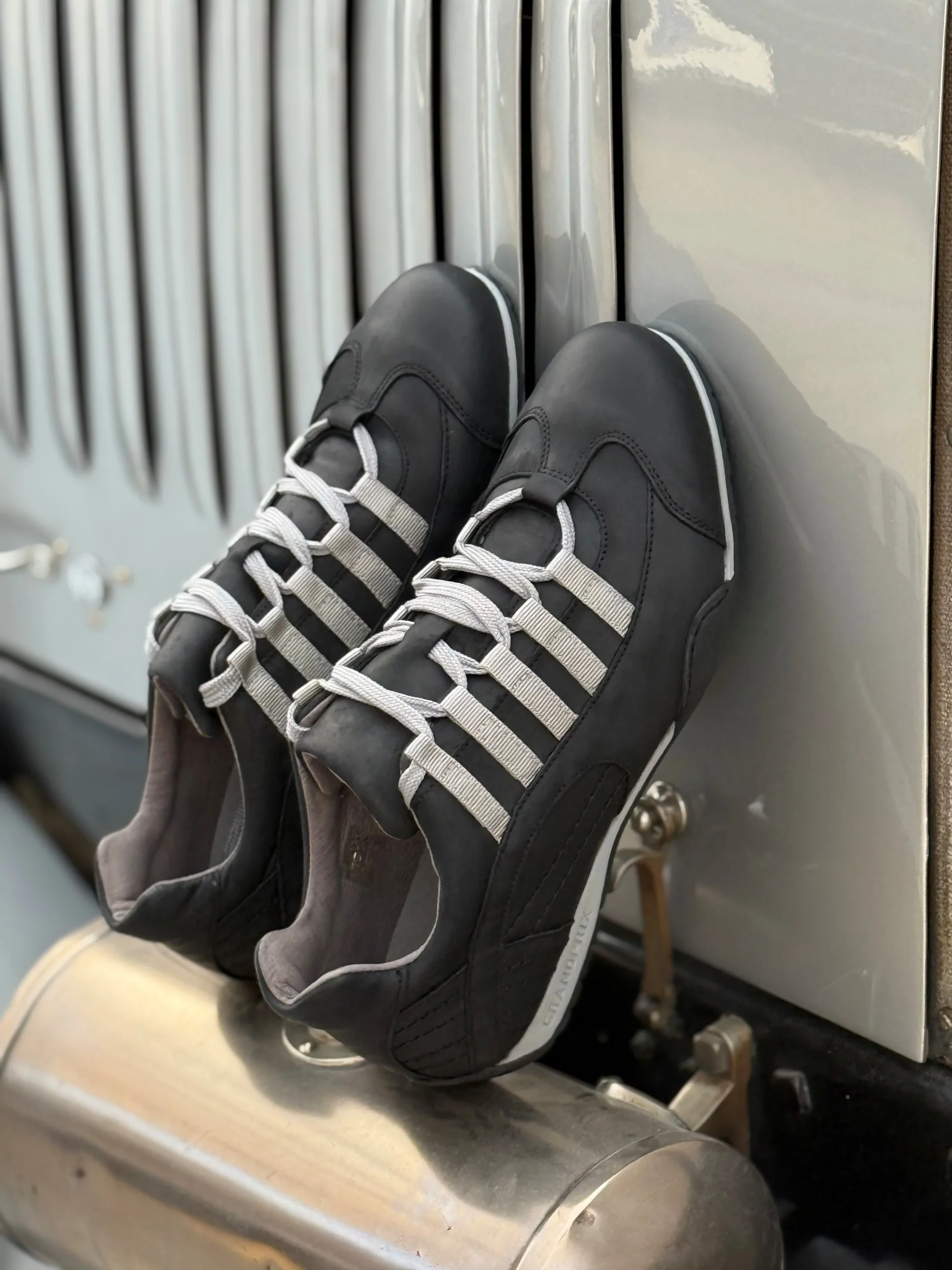 Le modèle présente des couleurs simples : gris clair et gris anthracite… Rappelant le circuit sur lequel les voitures font la course . Un esprit de compétition se dégage de cette paire de chaussure, sa sobriété inspire la confiance et l’assurance.