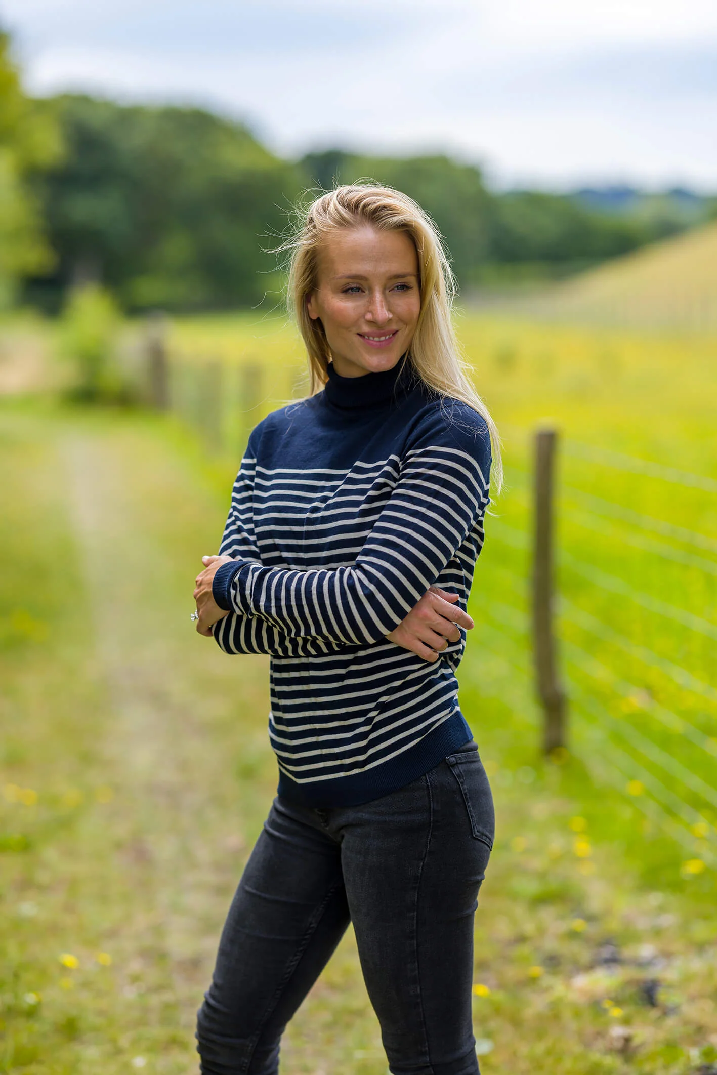Our cotton navy stripe top for women. Made from 100% premium cotton, this is the perfect base layer for any outfit.