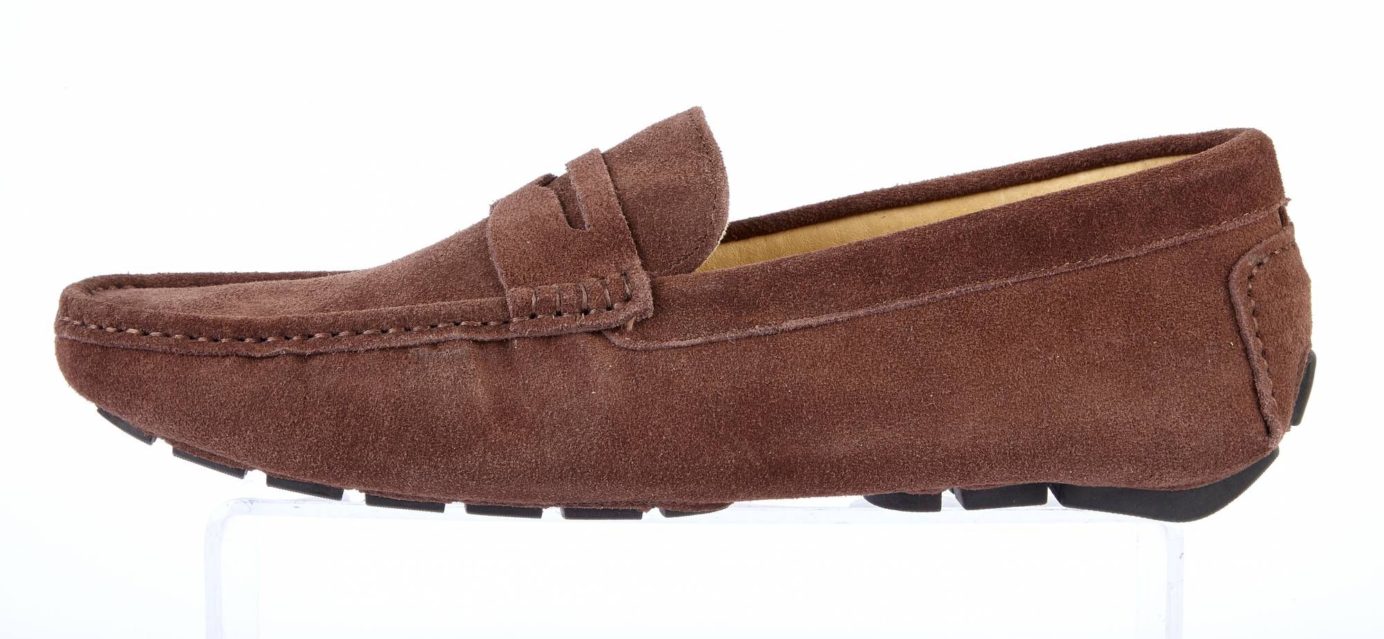 Our chocolate suede driving shoes for men, ideal for smart and casual wear. Can be used for a smart look at the office or for a more casual look during weekends too. Made with a high-quality suede upper, rubber sole and leather lining throughout. The fitting is a G width, but slightly wider rather than narrow. The rubber sole comes all the way round to halfway up the heel at the back, making it ideal for driving as the back of your shoe will not wear out when using pedals.