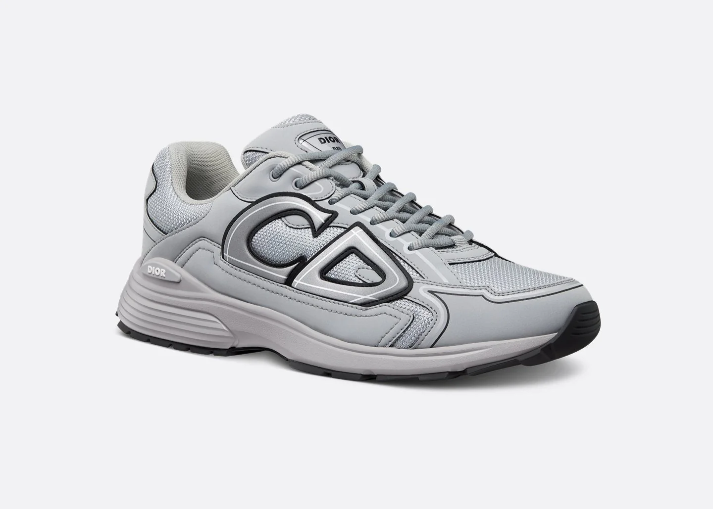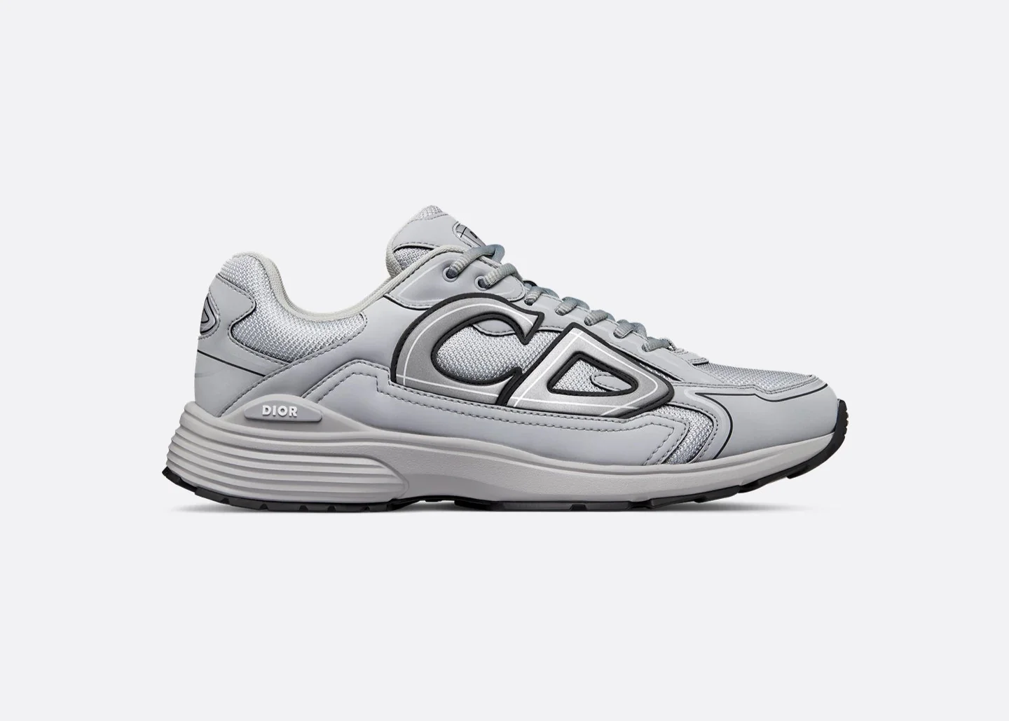 La tige associe un mesh technique respirant à des empiècements en daim et matières synthétiques, pour un rendu à la fois sportif et raffiné. Le coloris Grey joue sur des nuances de gris clair et anthracite, rehaussées par l’iconique logo « CD » latéral en relief, qui apporte une identité forte et reconnaissable.