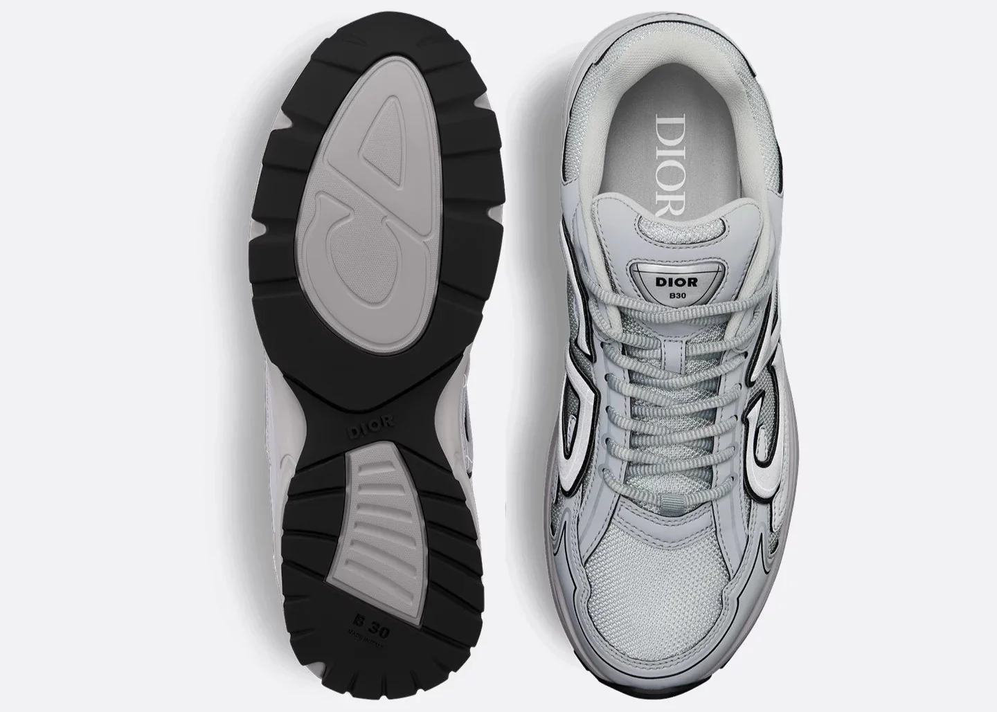 La Dior B30 Grey est une sneaker de luxe qui combine élégance parisienne et inspirations running modernes. Introduite dans les collections récentes de la Maison Dior, la B30 est rapidement devenue une silhouette emblématique grâce à son design avant-gardiste et son confort haut de gamme.