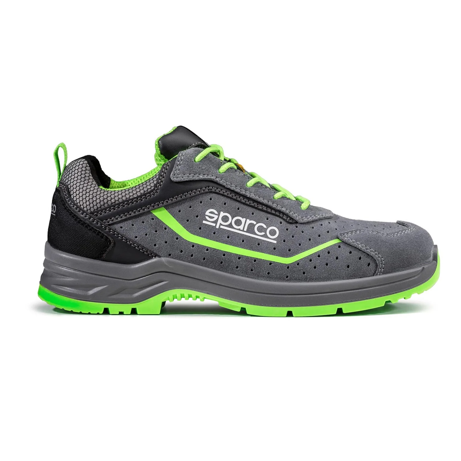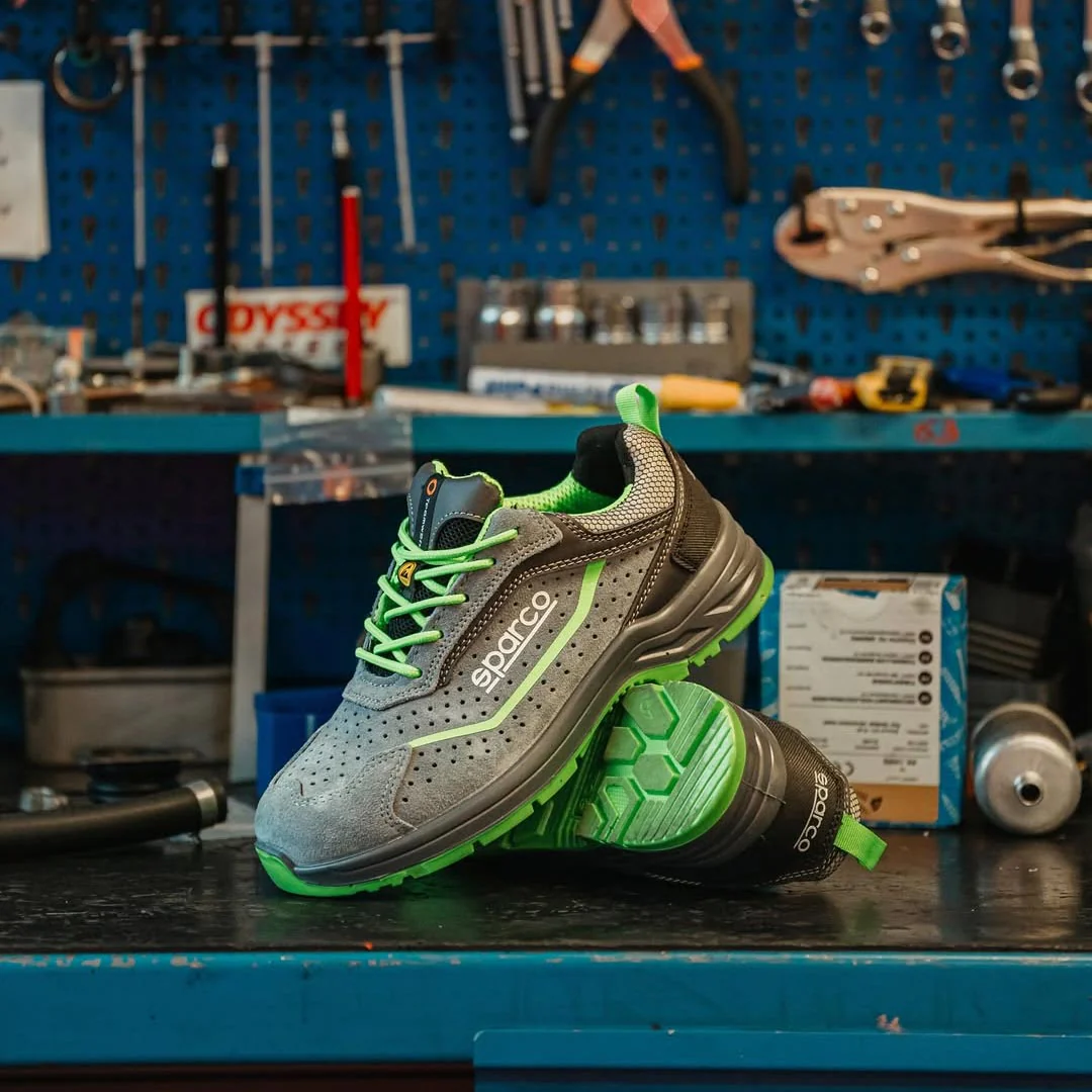 La Sparco Indy S1PS Felix ESD SR FO LG est une chaussure de sécurité basse en cuir suédé perforé, qui combine respirabilité et sécurité pour un usage quotidien. Conforme à la norme EN ISO 20345:2022, elle intègre un embout en fibre de verre 200 J, une semelle textile anti-perforation et une semelle extérieure Flexgrip+ offrant une adhérence maximale sur sols lisses, escaliers et échelles. Grâce à sa doublure 3D respirante et son amorti en PU bi-densité, elle garantit un confort durable. Avec un poids de 480 g (pointure 42), elle est parfaitement adaptée aux métiers de la logistique, de la maintenance et de l’industrie légère, alliant légèreté, protection et confort.
