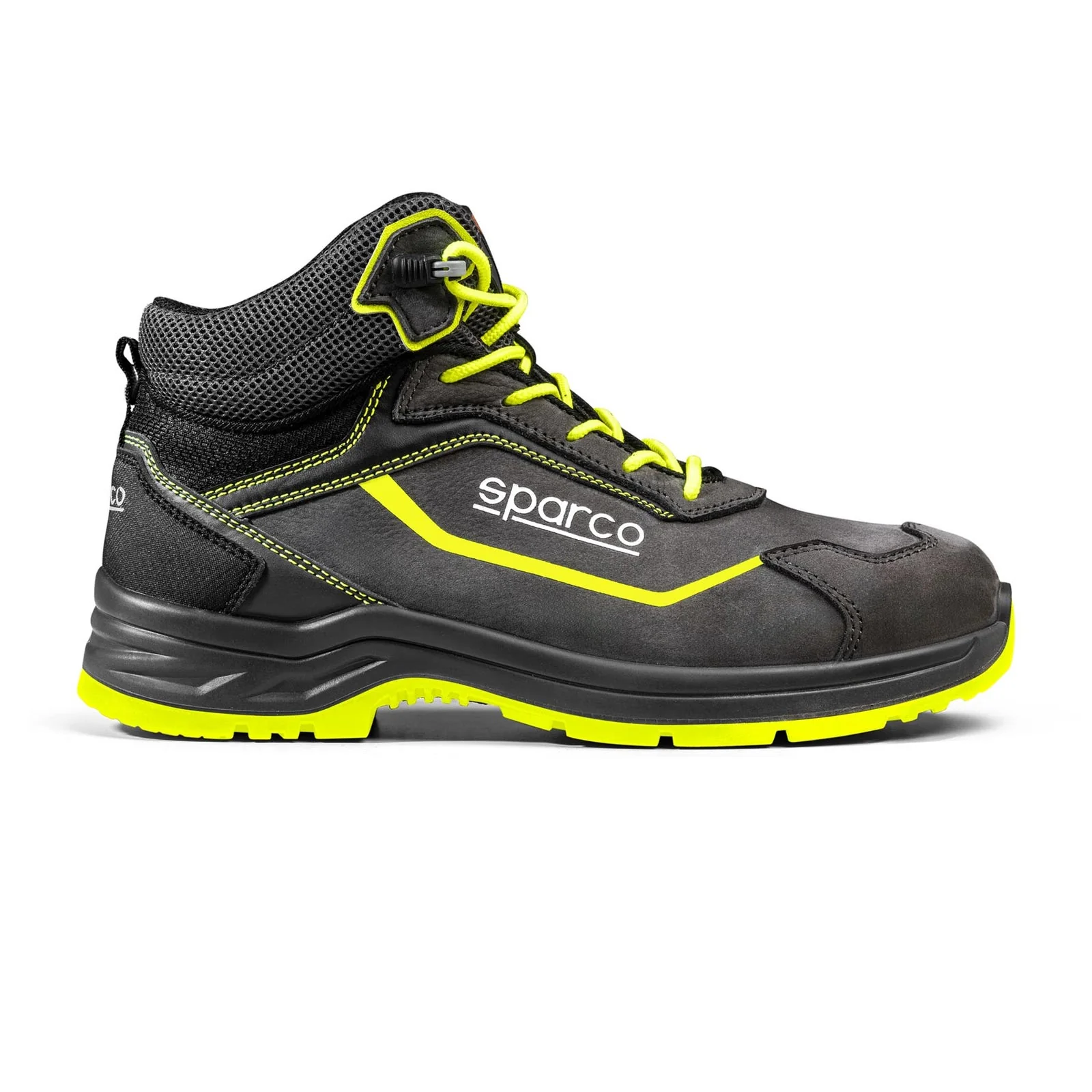 La Sparco Indy S3S Juri ESD SR FO LG est une chaussure de sécurité montante en nubuck hydrofuge, conçue pour une protection renforcée et un confort optimal. Conforme à la norme EN ISO 20345:2022, elle associe un embout en fibre de verre 200 J, un intercalaire textile anti-perforation et une semelle extérieure Flexgrip+ offrant une excellente adhérence sur sols lisses, escaliers et échelles. Grâce à sa tige haute, sa boucle de chaussage rapide et son amorti bi-densité, elle combine maintien, confort et sécurité. Avec un poids de 510 g (pointure 42), elle est idéale pour les environnements de construction, de maintenance et de logistique, où robustesse et stabilité sont essentielles.