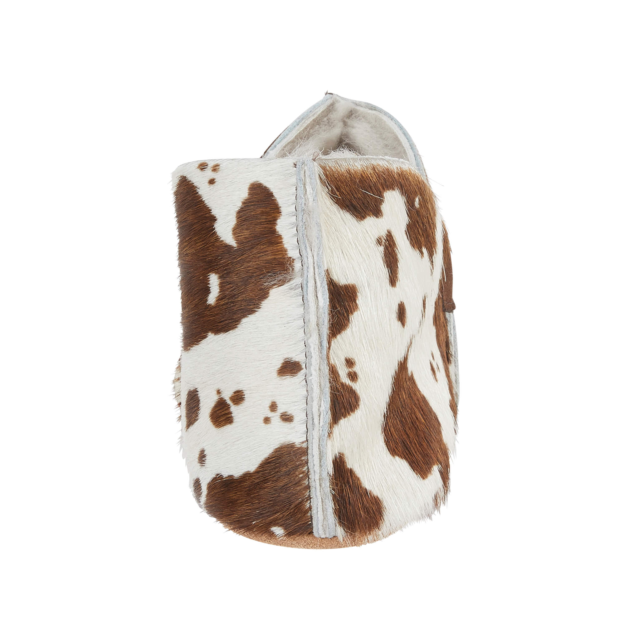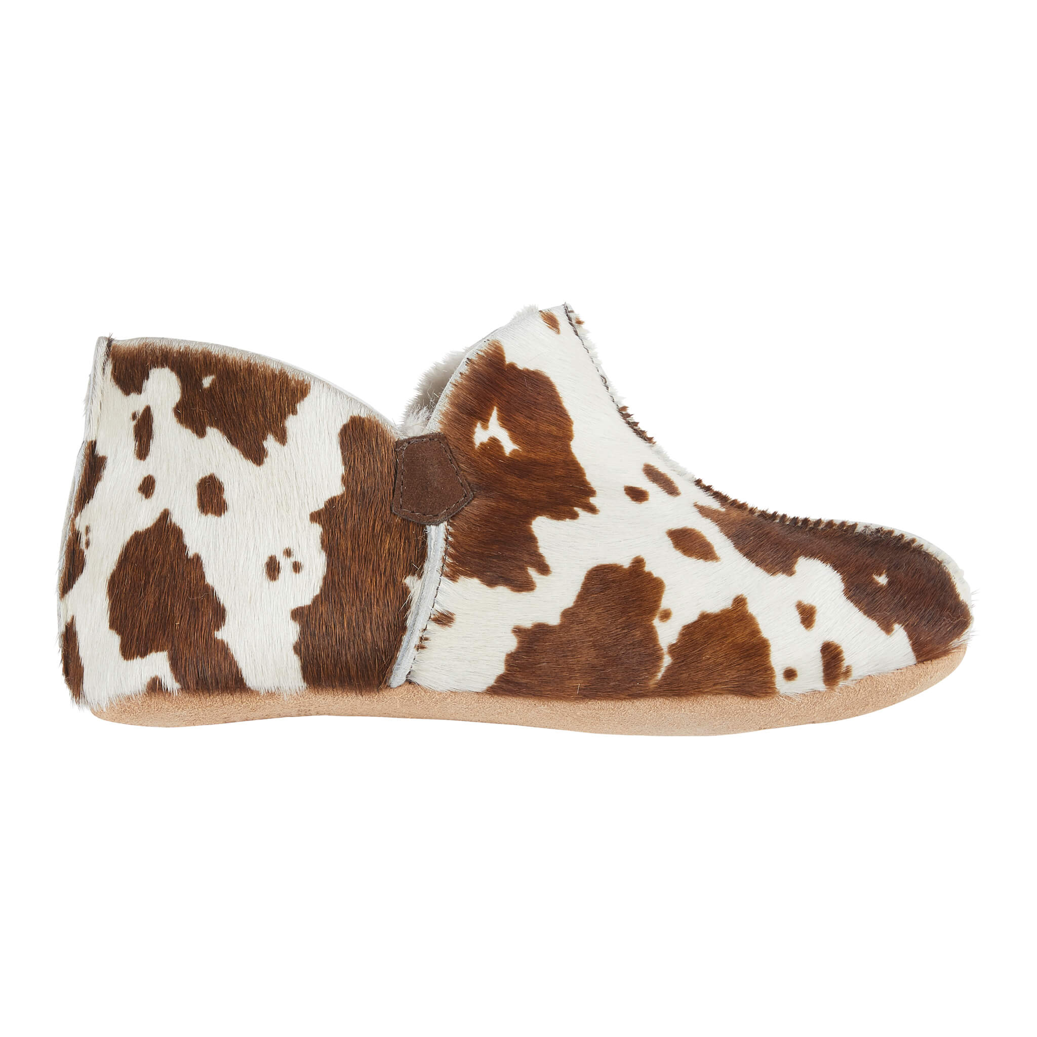 Our ladies sheepskin boot slipper. Made with a premium Italian hair-on cowhide upper, our signature real sheepskin lining and a suede sole. Made in England.