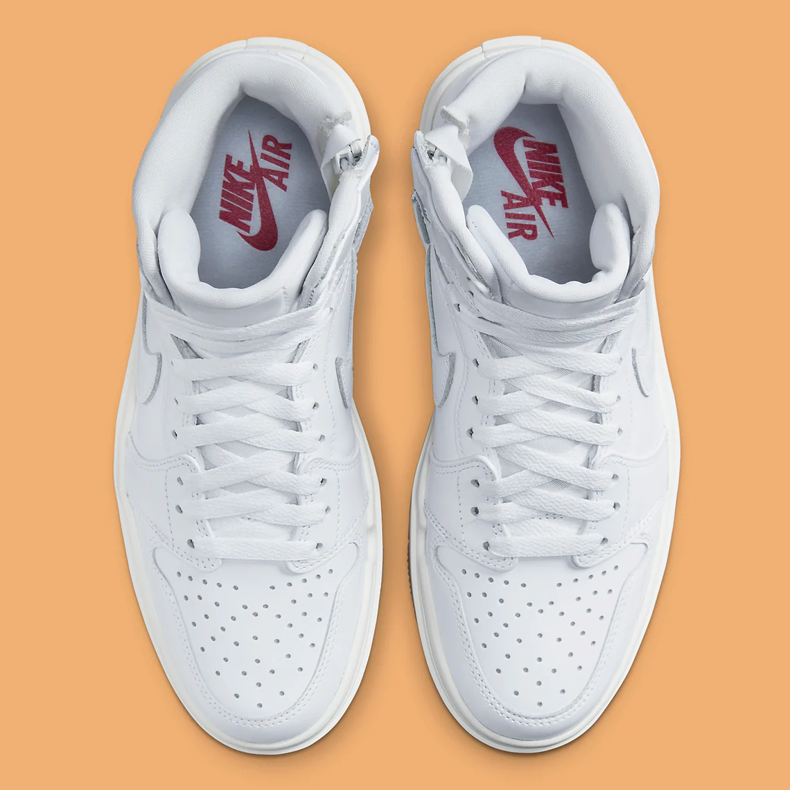 Avec sa dernière apparition, la Air Jordan 1 High Elevate tente un look plus simple, quoique surélevé. La tige, pour commencer, est entièrement habillée de peinture blanche, qui est brossée non seulement sur les cuirs lisses mais également vernis. Ailleurs, l’unité en dentelle et les accents adjacents emboîtent le pas, tandis que le bas de la plateforme opte pour des parois latérales crème et un fond en gomme classique.