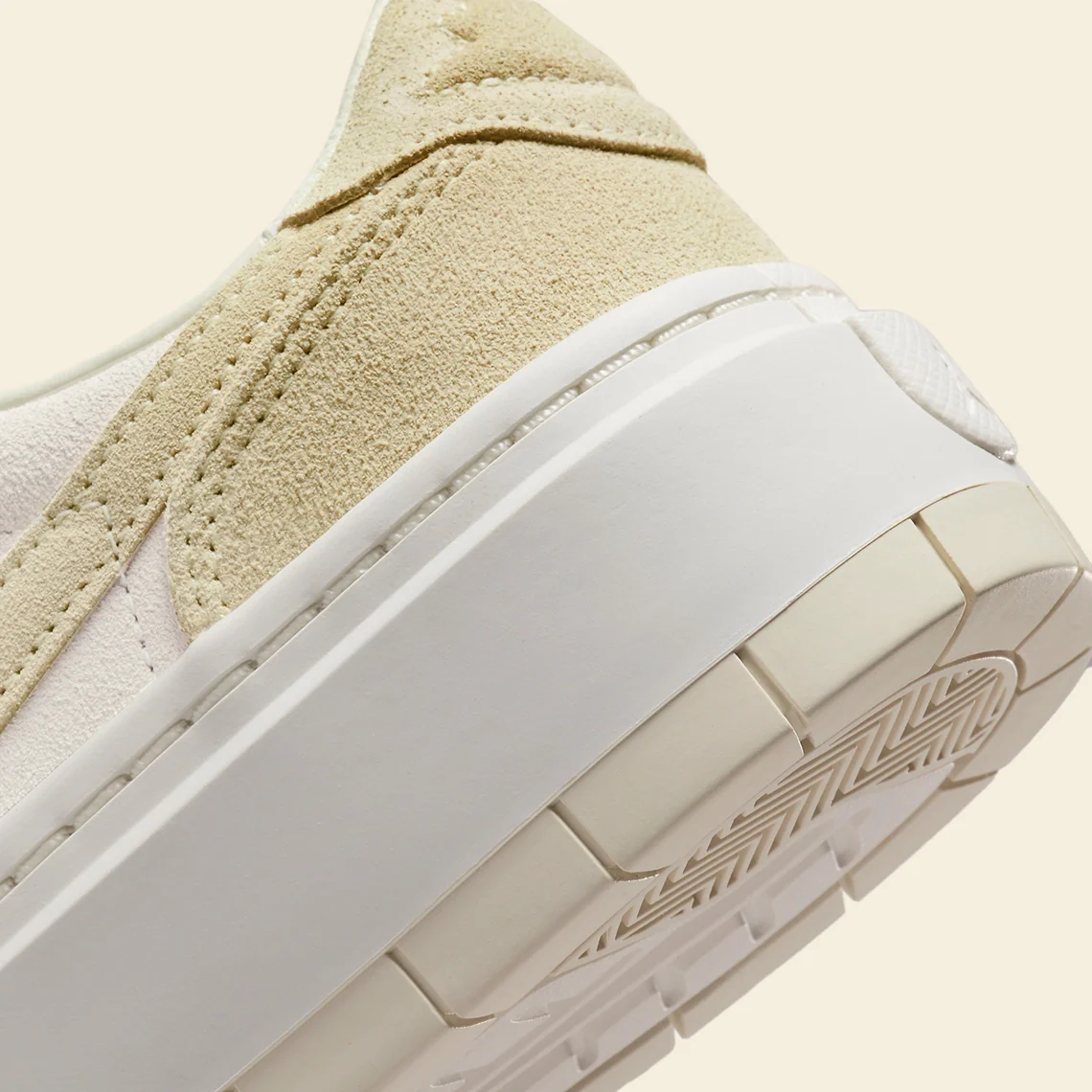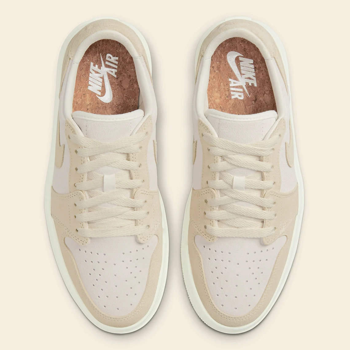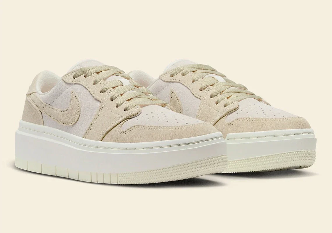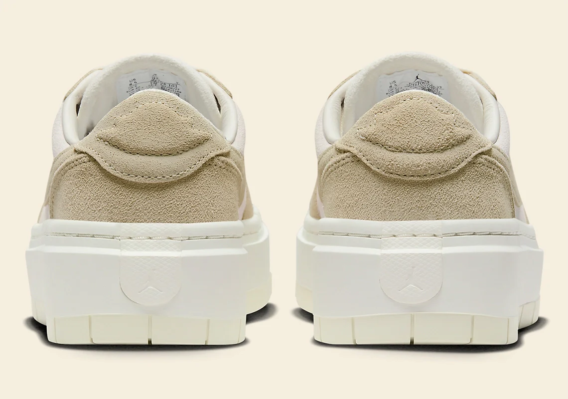 Et contrairement à ses prédécesseurs, cette paire opte pour le daim sur sa tige : la base arbore un léger « Coconut Milk« , tandis que les superpositions au sommet contrastent dans un beige légèrement plus foncé. La semelle intermédiaire surélevée vient compléter la couleur la plus claire des deux, et le marquage, comme les ailes et le Jumpman sur le talon, est extrêmement réduit.