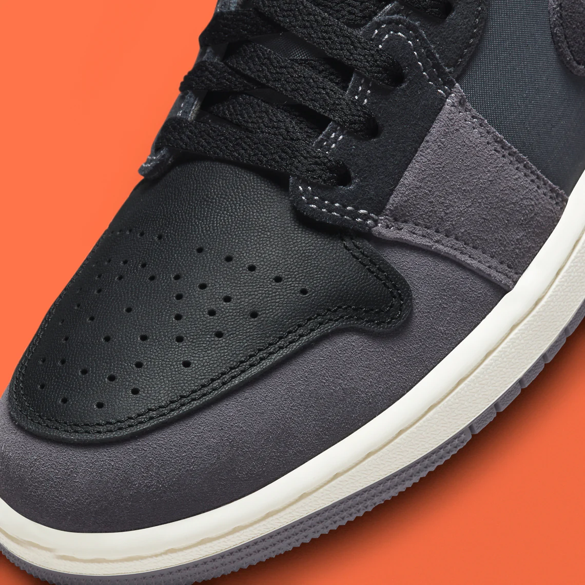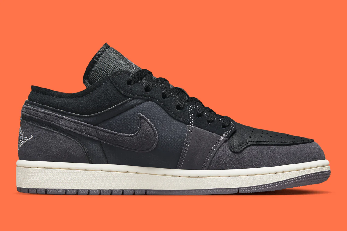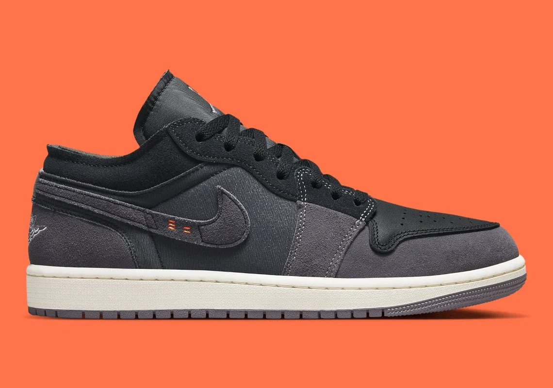 La Air Jordan 1 Low est l’une des versions les plus expérimentales de la première basket signée Michael Jordan. Elle ne cesse d’élargir la liste des modèles de la série. Pour sa prochaine proposition, la silhouette orientée vers le style de vie se laisse aller à un thème « Inside Out » vu sur les paires précédentes. Bien qu’aucune information solide sur l’inspiration derrière les chaussures n’ait été partagée par la marque, le schéma de couleurs prédominant noir et gris, ainsi que l’arrangement asymétrique à travers la tige ressemble à la doublure intérieure. Des surpiqûres oranges minimales exposées au niveau des swooshes latéraux et des boîtes à orteils superposées à un renforcement de l’avant-pied démontrent davantage le thème « Inside Out ». Le reste de la Air Jordan 1 s’adonne à une tenue grise qui ne fait pas un clin d’œil aussi évident à la future version rétro, mais qui reste polyvalente pour être portée toute l’année.