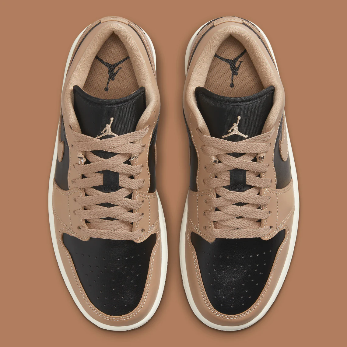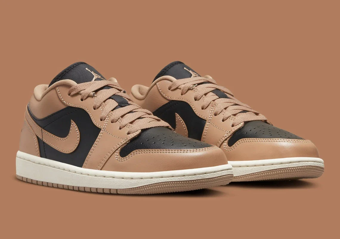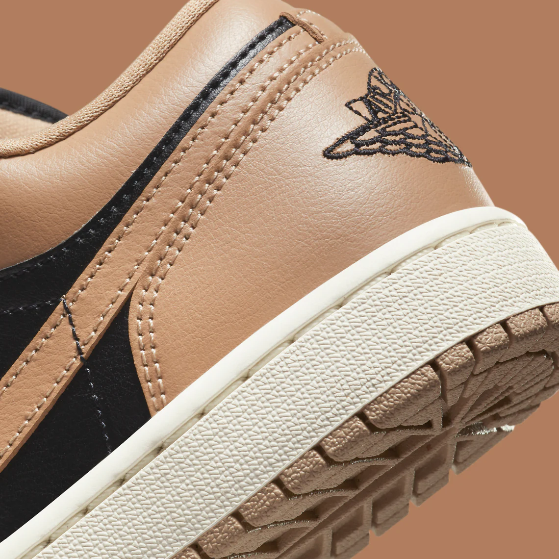 Avant les fêtes de fin d’année, une Air Jordan 1 Low est apparue dans une composition de cuir divisée entre des panneaux noirs et des panneaux de couleur havane. Seul l’avenir nous dira si la rétro vieillira et se patinera comme les précédentes propositions construites avec le matériau mondialement connu, mais ce qui est certain, c’est que Jordan Brand continue de réimaginer le design de Peter Moore, vieux de 37 ans, de manière rafraîchissante et convaincante. Les languettes en nylon complètent bien la boîte à orteils et les panneaux du milieu du pied, tout comme le logo « Wings » sur la colonne vertébrale. Sous le pied, la traction de la Air Jordan 1, souvent imitée, favorise une transformation en marron clair qui complète la chaussure.