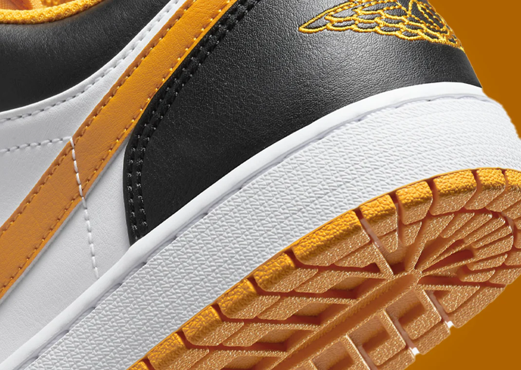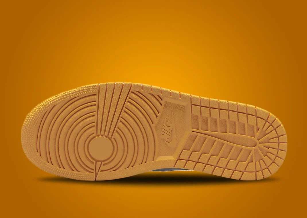 Fabriquée à partir d’une construction en cuir lisse, la base est peinte en blanc, tandis que des panneaux jaunes se retrouvent sur la boîte à orteils, le système de laçage et la languette. Des accents noirs ornent la cheville et le talon, où vous trouverez le légendaire insigne ailé de la basket. Les logos Jumpman se trouvent sur la languette et la semelle intérieure, et la semelle intercalaire blanche complète le tout.