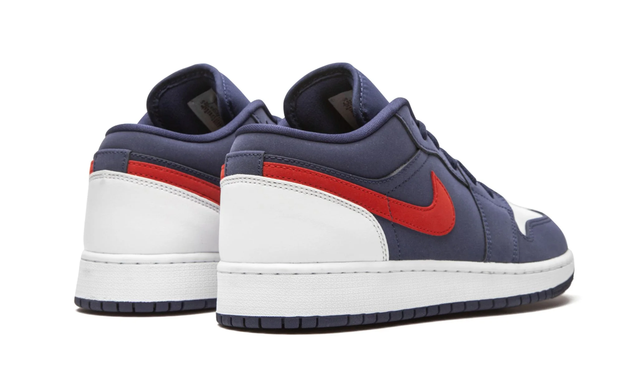 La Air Jordan 1 Low GS « USA » est la taille jeune de la première chaussure signature de Michael Jordan en version low-top habillée d’un coloris patriotique. Réduite pour s’adapter aux pieds des enfants, ce modèle « USA » affiche fièrement les couleurs du drapeau américain. L’empeigne est composée de nubuck Midnight Navy sur l’avant-pied, le milieu et le col.