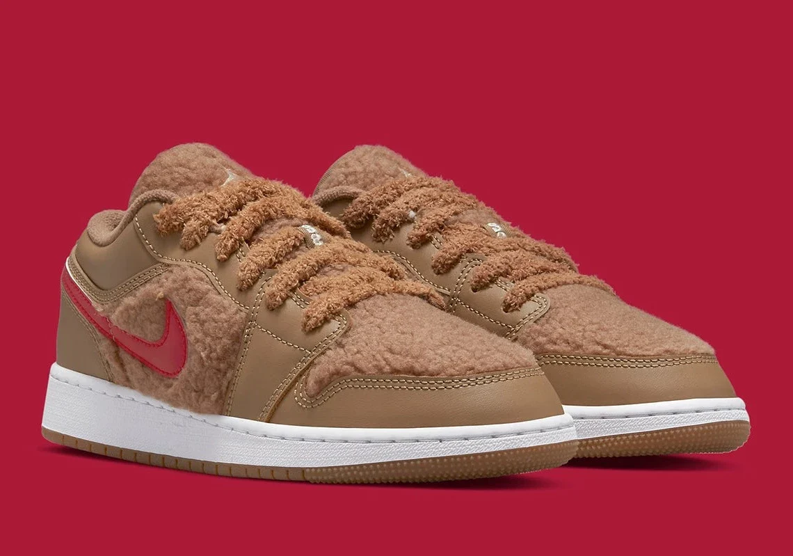 Bien qu’elle puisse partager des similitudes avec la Air Jordan 4 « Wild Things », cette prochaine Air Jordan 1 Low semble assumer une identité propre. Surnommée « Teddy Bear » (probablement de manière familière) la paire s’habille comme le jouet d’enfance préféré de tous, ajoutant au sommet de sa fausse fourrure seulement un petit nombre de détails colorés. Mais bien que peu nombreux, ces derniers couvrent une variété décente. « Pink Salt « , » Racer Blue « , » Gym Red » et » Barely Volt » diversifient une gamme de couleurs assez limitée, presque entièrement basée sur le thème du titre.
