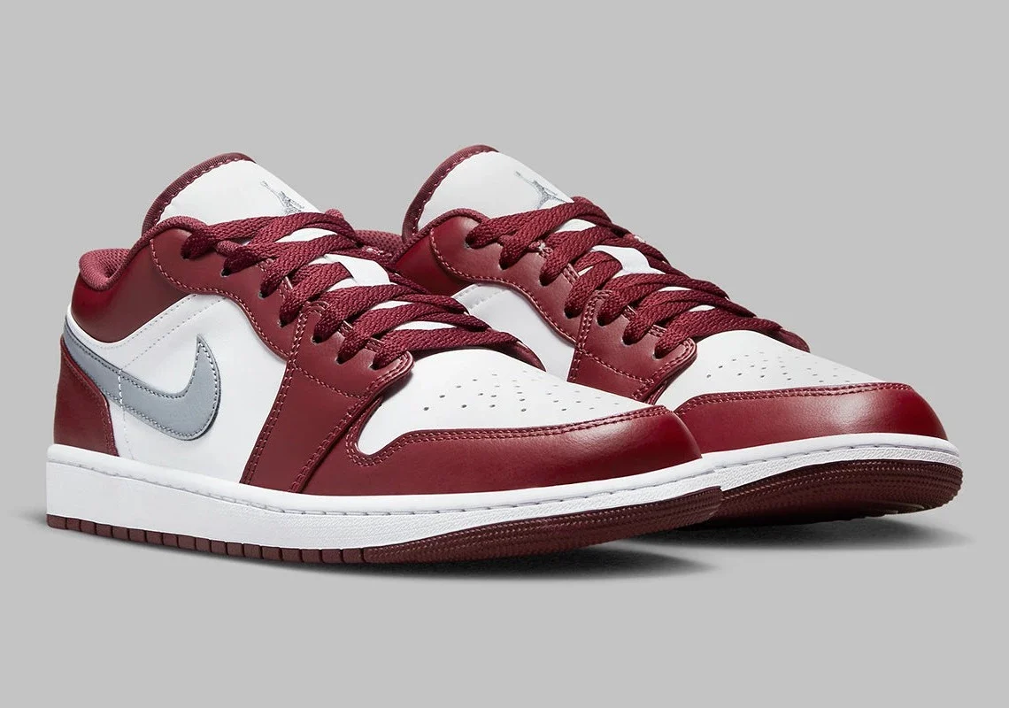 Il n’est pas rare de voir des Air Jordan 1 colorways transférés d’un modèle à l’autre, car le plus souvent, si cela fonctionne bien sur une version, cela fonctionnera très bien sur une autre. C’est le cas de cette Air Jordan 1 Low qui s’inspire clairement de la Jordan 1 Retro High OG « Bordeaux » de 2021.