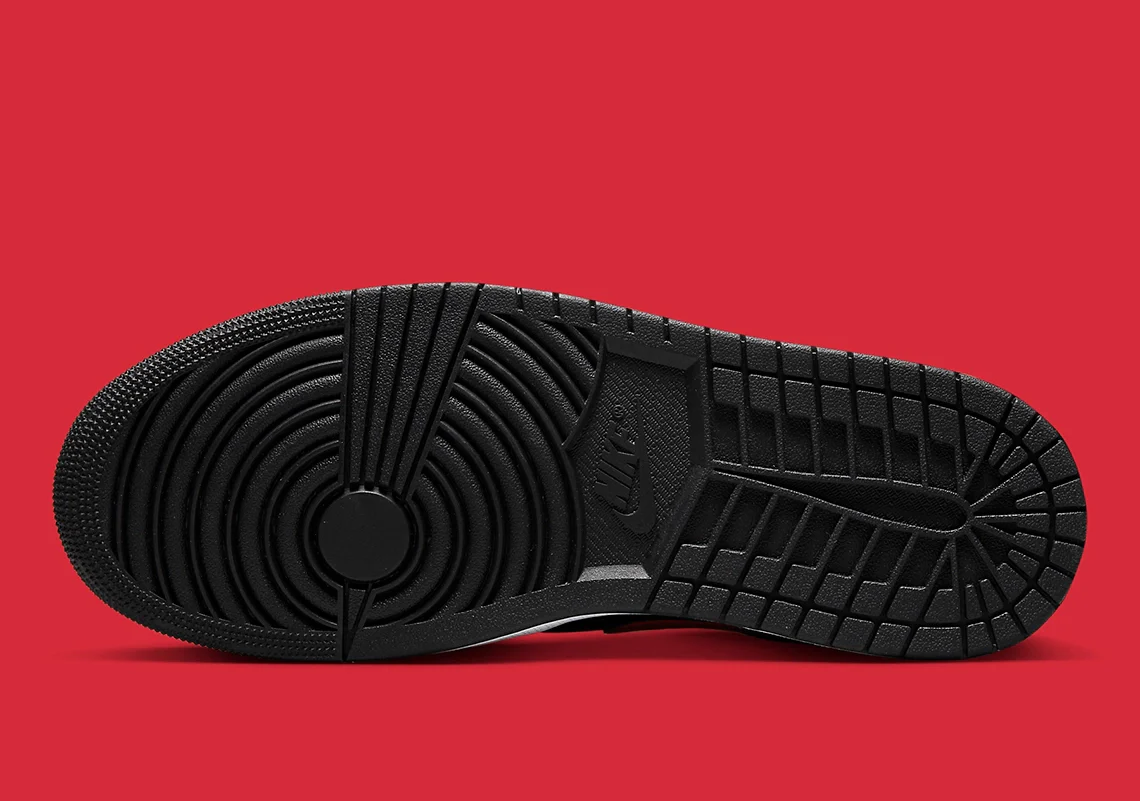 Par rapport à ses homologues les plus anciens, cette Air Jordan 1 Low utilise davantage le noir, sur la pointe, le profil, le talon et l’unité de laçage. Le Swoosh, la doublure et le logo Wings se croisent ensuite par-dessus, soulignés par la nuance de rouge caractéristique du Jumpman, laissant la boîte à orteils et la semelle intercalaire compléter la palette en blanc.