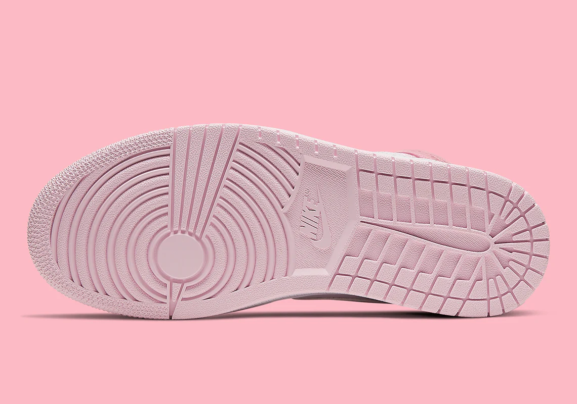 Les orteils ont été recouverts d’un daim lisse, les panneaux au milieu du pied et les pointes des orteils conservent leurs constructions traditionnelles en cuir lisse, et les panneaux arrière (peut-être la caractéristique la plus remarquable de cette paire) sont améliorés avec les matériaux écailleux du basket-ball cuir. De plus, les languettes ont été retravaillées en maille filet et les renforts de talon, en synthétique lisse. Même si la Saint-Valentin est terminée, ces AJ1 ne semblent pas abandonner l’essence des vacances amoureuses en tant que teintes de rose plus douces entre ses différents matériaux et se rapprochent de notes plus nettes de toucher blanc sur les Swooshes et les semelles intermédiaires.